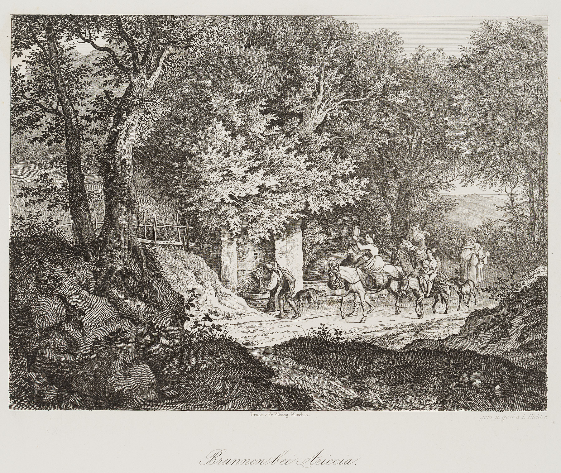 - Inscription: Lower middle signed: “”gem. u. gest. v. L.Richter | Brunnen bei Ariccia””.