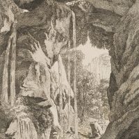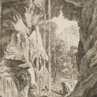 Ludwig Richter (1803 Dresden – 1884 ibid.), ‘The Blackbird Fall’ View from the cave with waterfall, 1820, Etching