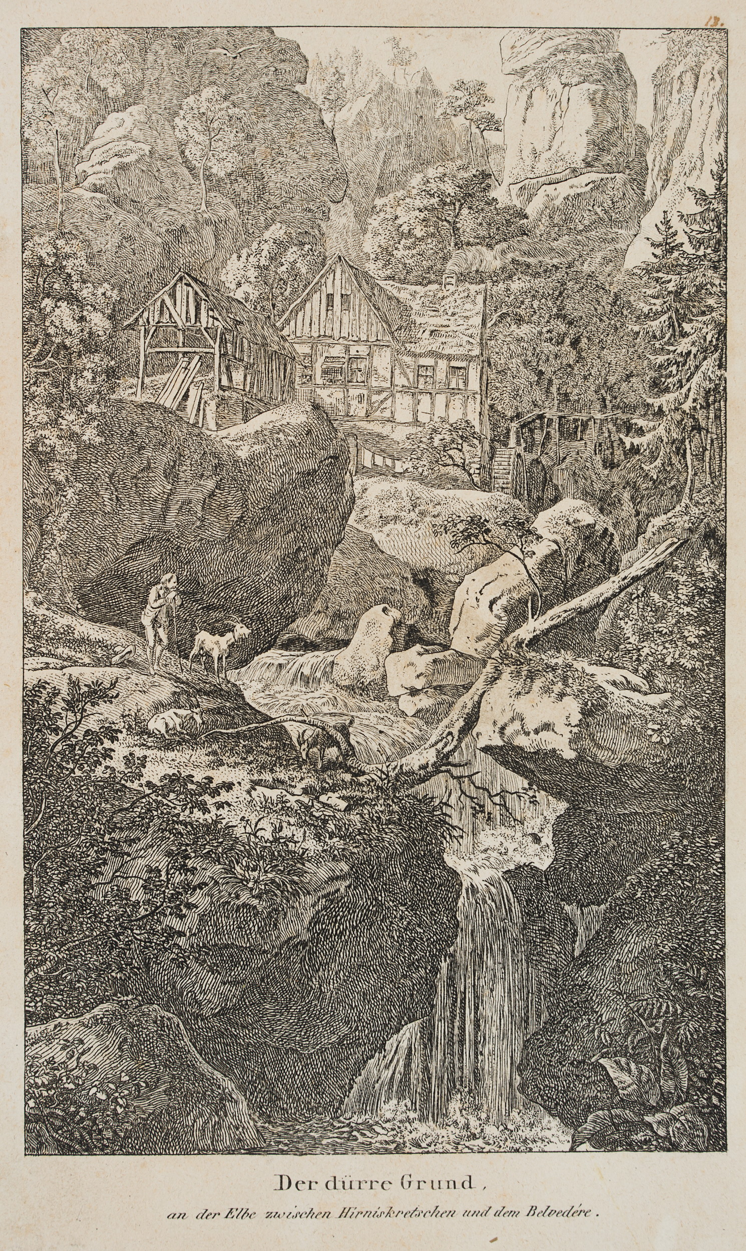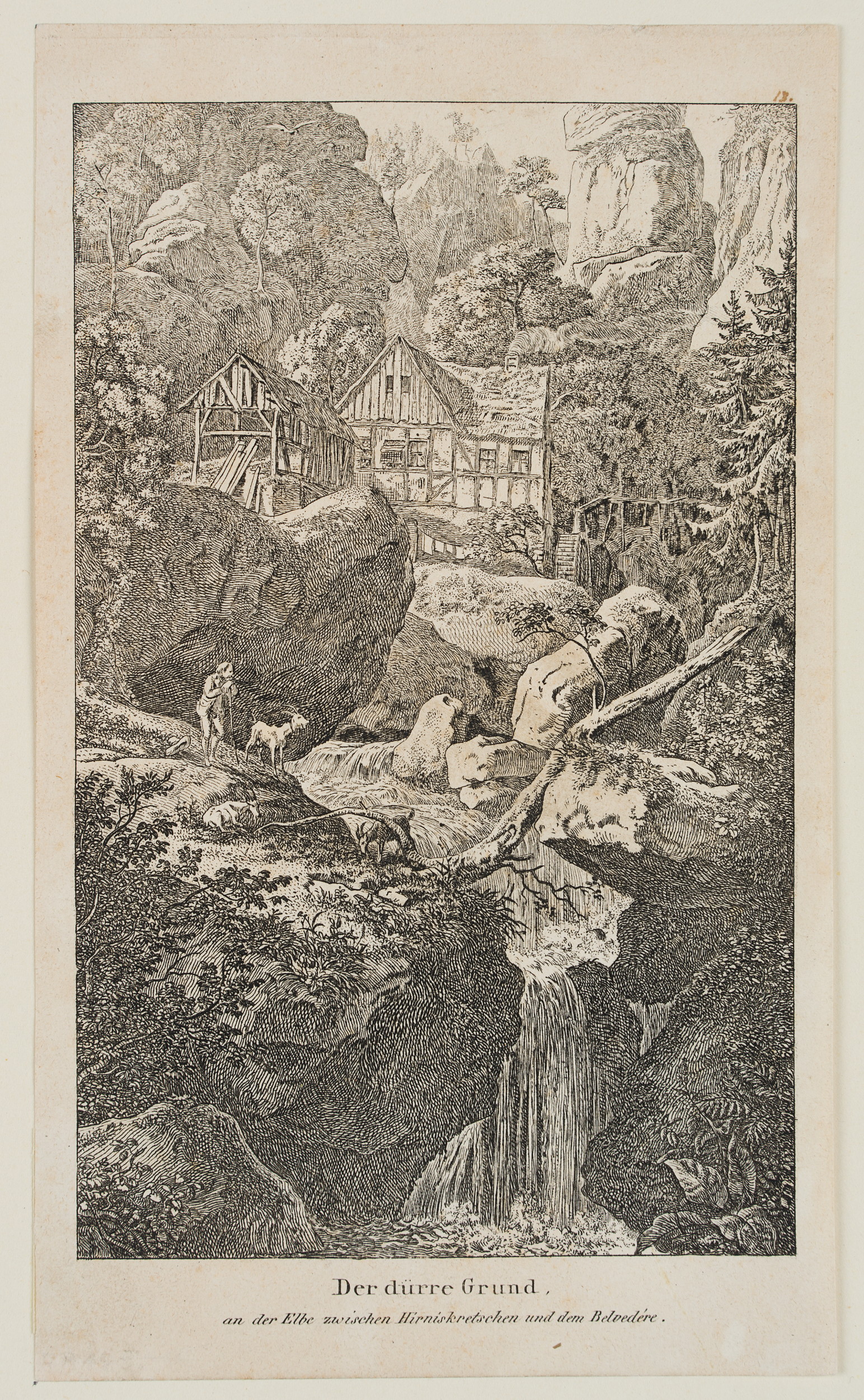 - Keywords: Gorge, Saxon Switzerland, mountains, nature, mill, sawmill, goatherd, waterfall, 19th century, Romanticism, Nature, Germany,