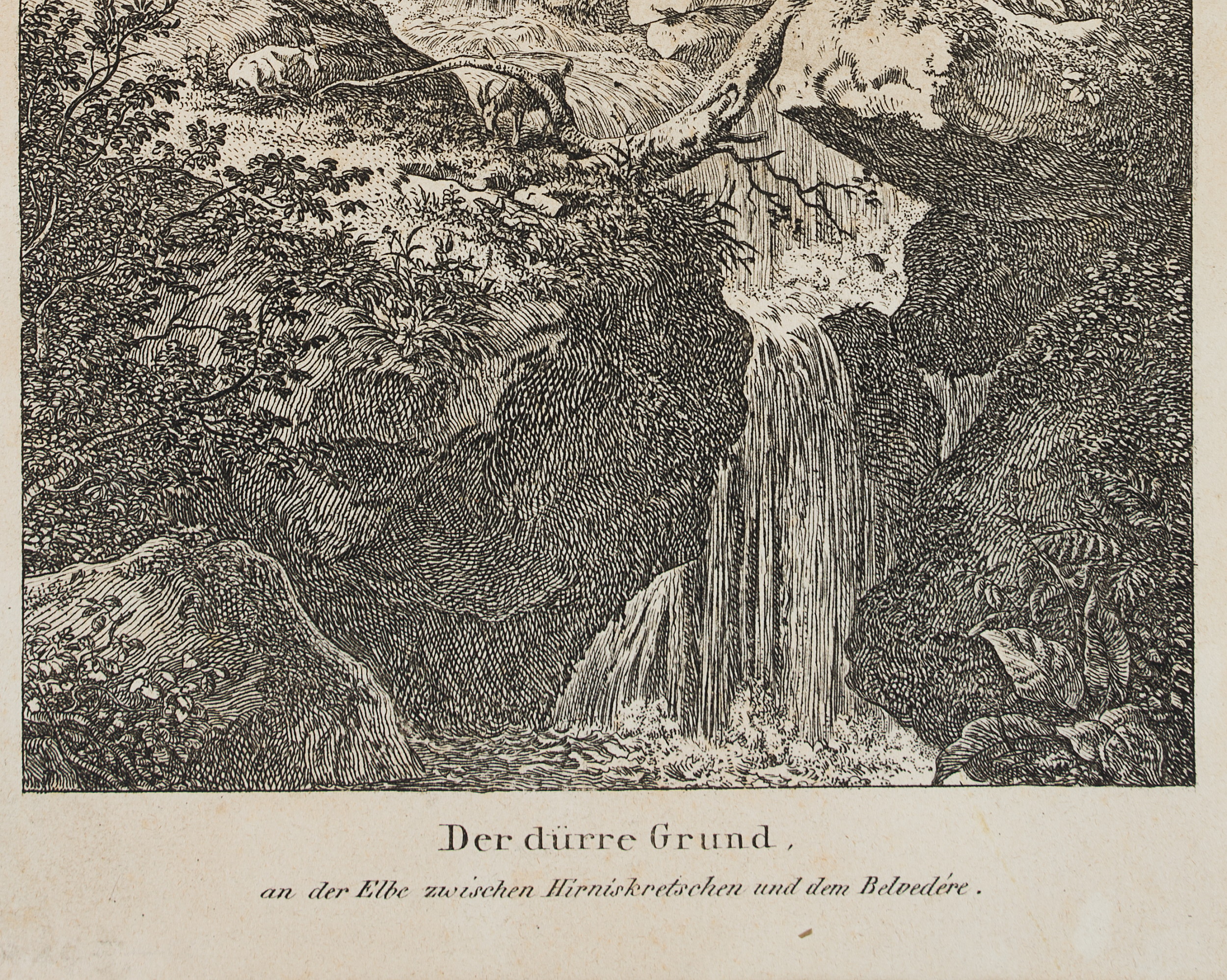 - Schlagworte: Schlucht, Sächsische Schweiz, Gebirge, Natur, Mühle, Sägewerk, Ziegenhirte, Wasserfall, Natur, Deutschland, Romantik, 1800-1849