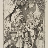 Ludwig Richter (1803 Dresden – 1884 ebd.), Der Schnitzelmann von Nürnberg. Kinder bei einem Puppenspieler, 1849, Radierung