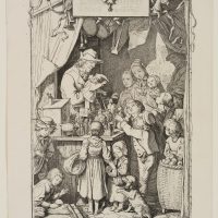 Ludwig Richter (1803 Dresden – 1884 ibid.), The Schnitzel Man of Nuremberg Children with a puppeteer, 1849, Etching
