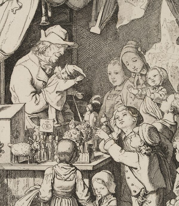 - Description: Delightful genre scene in the tent of a puppeteer or toy dealer.
