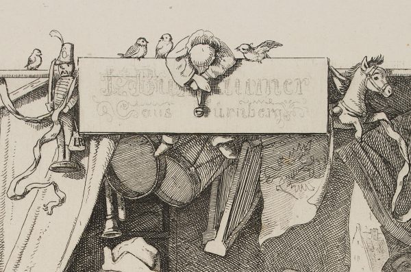 - Inscription: Upper left monogrammed: “LR”. At the upper part inscribed in the printing plate: “J. Bux[ba]umer aus Nürnberg”.
