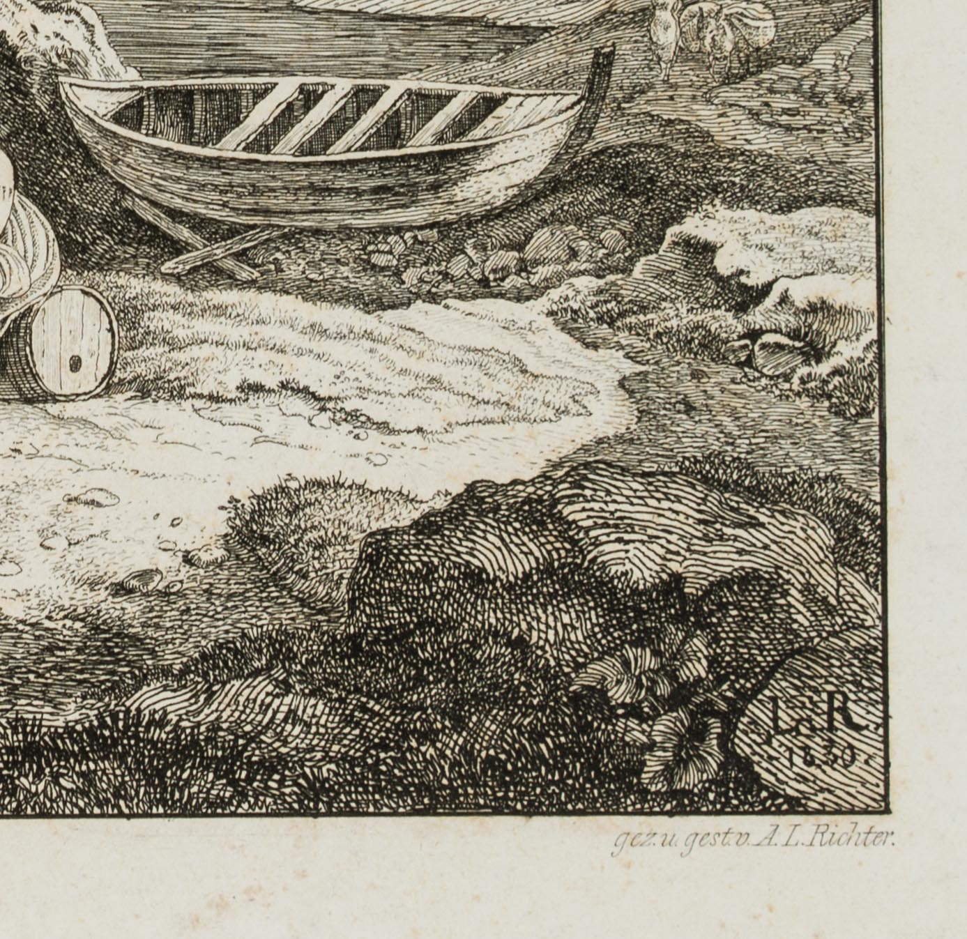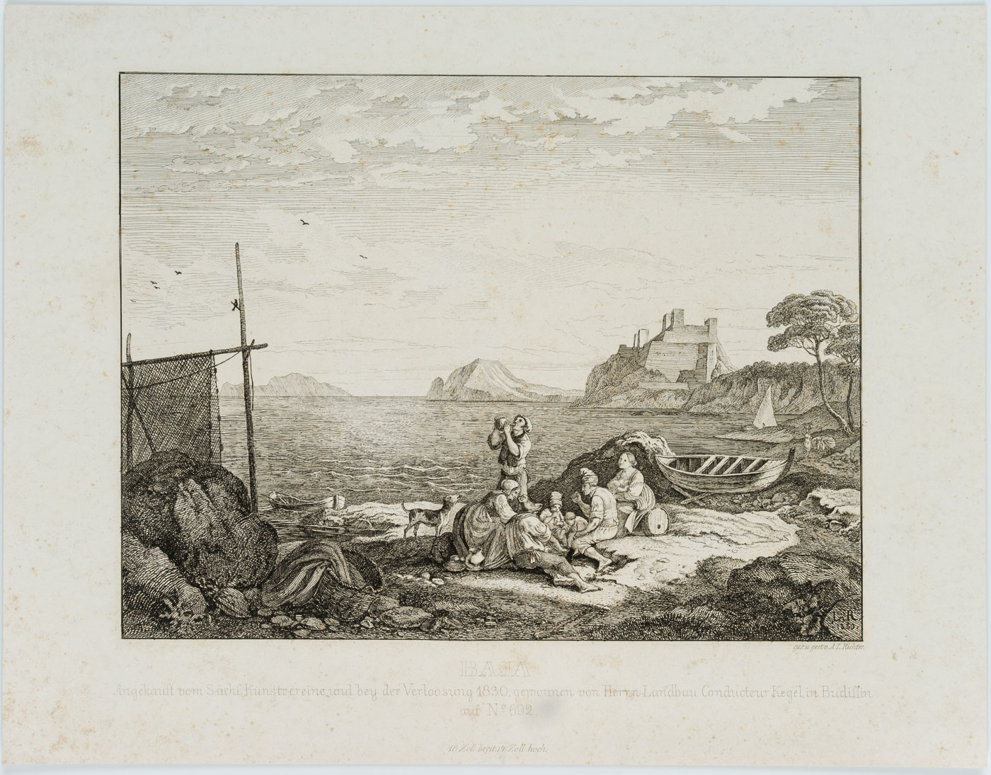 Ludwig Richter (1803 Dresden – 1884 ebd.), Fischer in der Bucht von Baia, Italien, 1830, Radierung