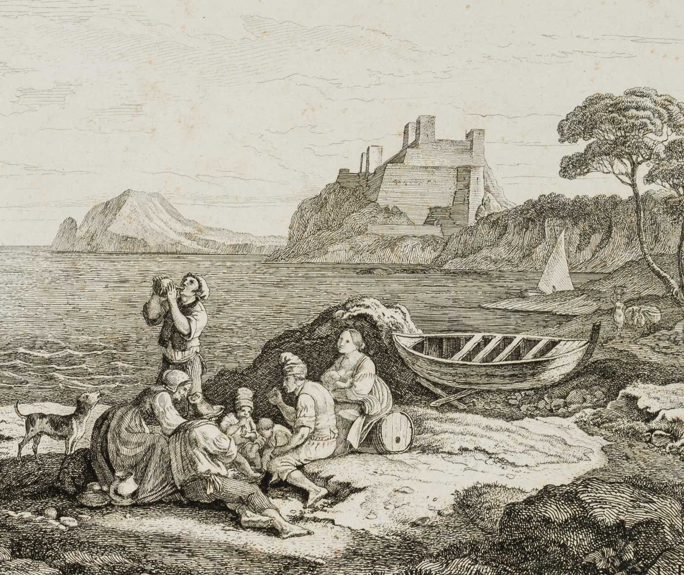 Ludwig Richter (1803 Dresden – 1884 ibid.), Fishermen in the Bay of Baia, Italy, 1830, Etching