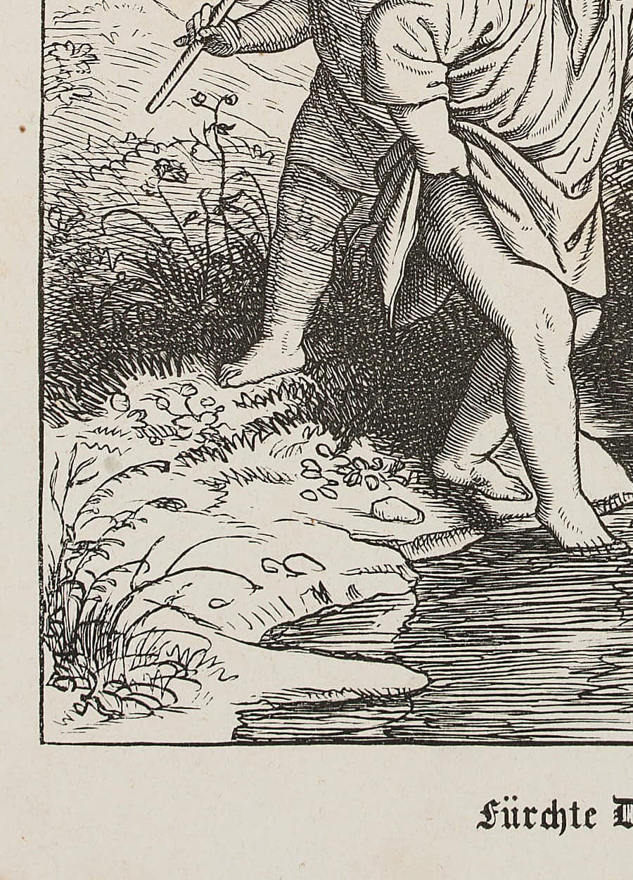 - Inscription: Lower middle inscribed in the printing plate: “Fürchte Dich nicht!”.