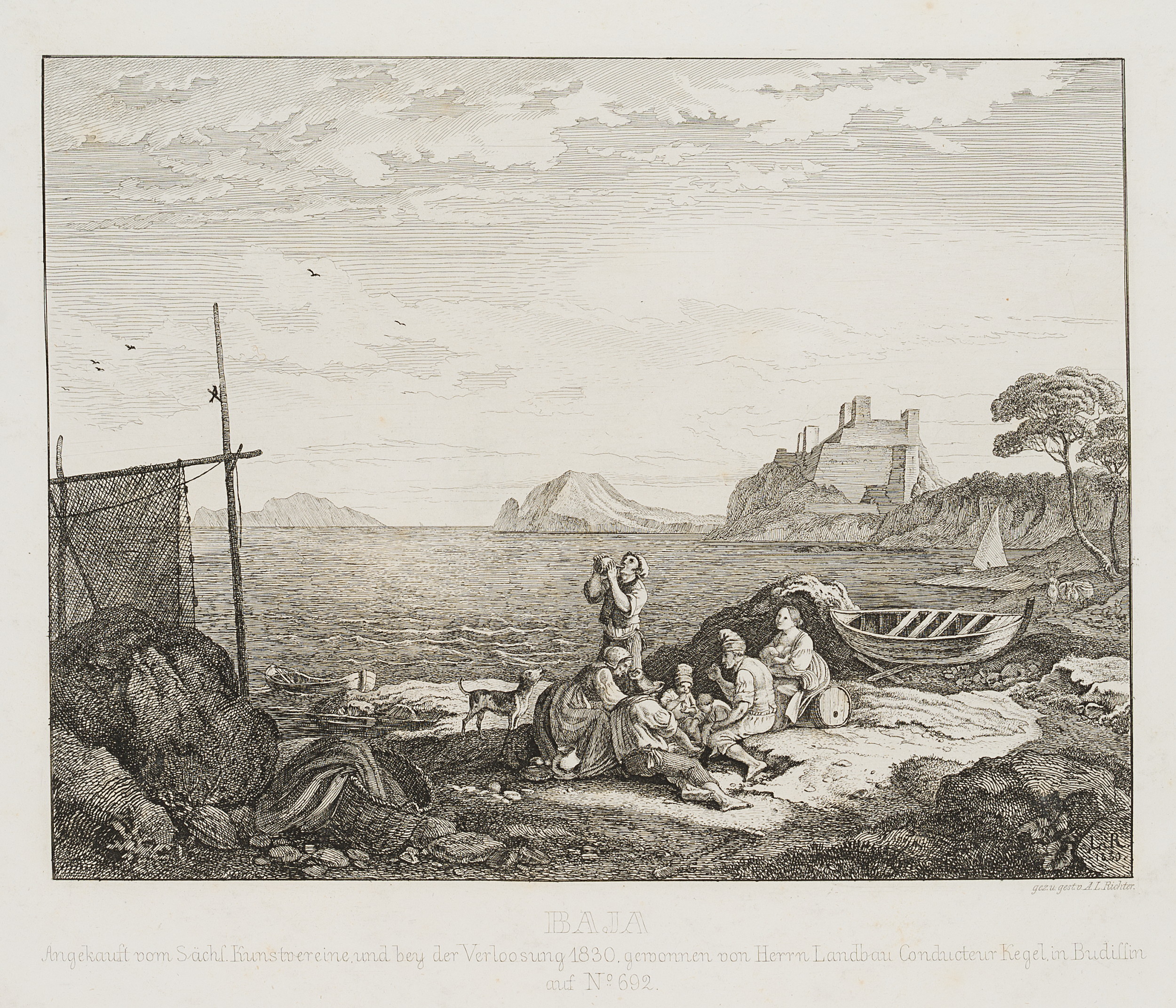 Ludwig Richter (1803 Dresden – 1884 ibid.), Neapolitan fishermen on the coast of Baja, 1830, Etching