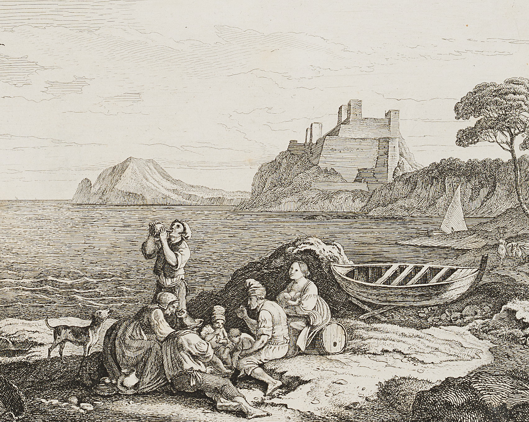 Ludwig Richter (1803 Dresden – 1884 ebd.), Neapolitanische Fischer an der Küste von Baja, 1830, Radierung