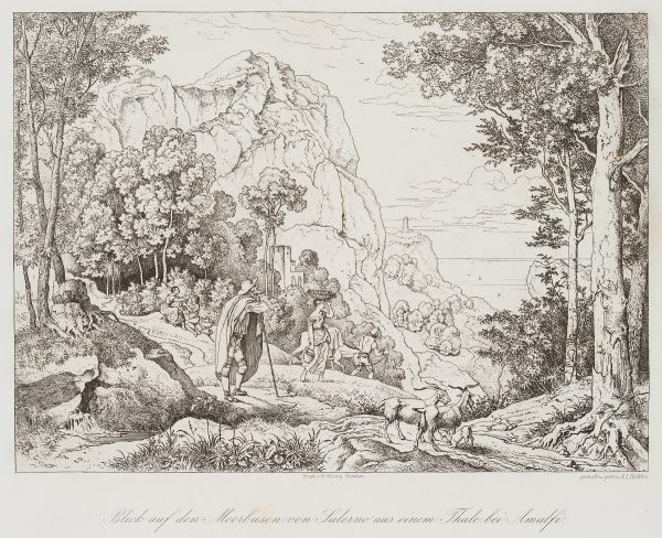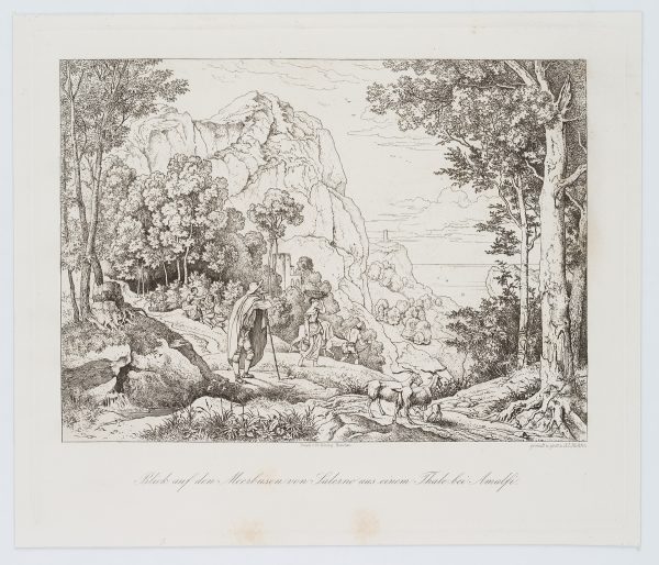 Ludwig Richter (1803 Dresden – 1884 ebd.), mit Aussicht auf die Bucht von Salerno, 1875, Radierung