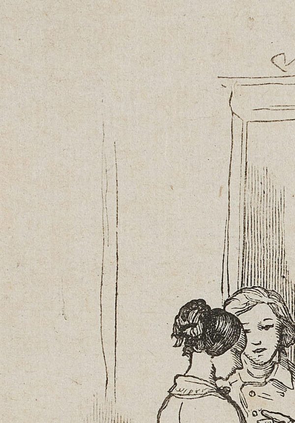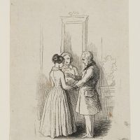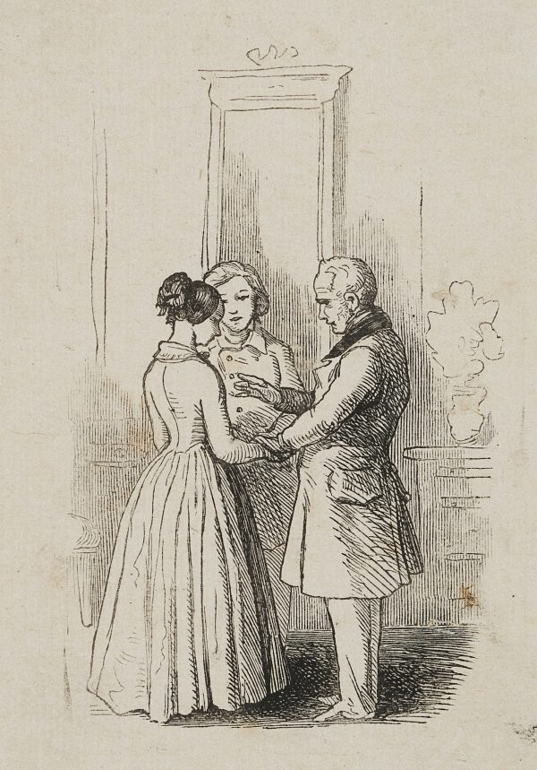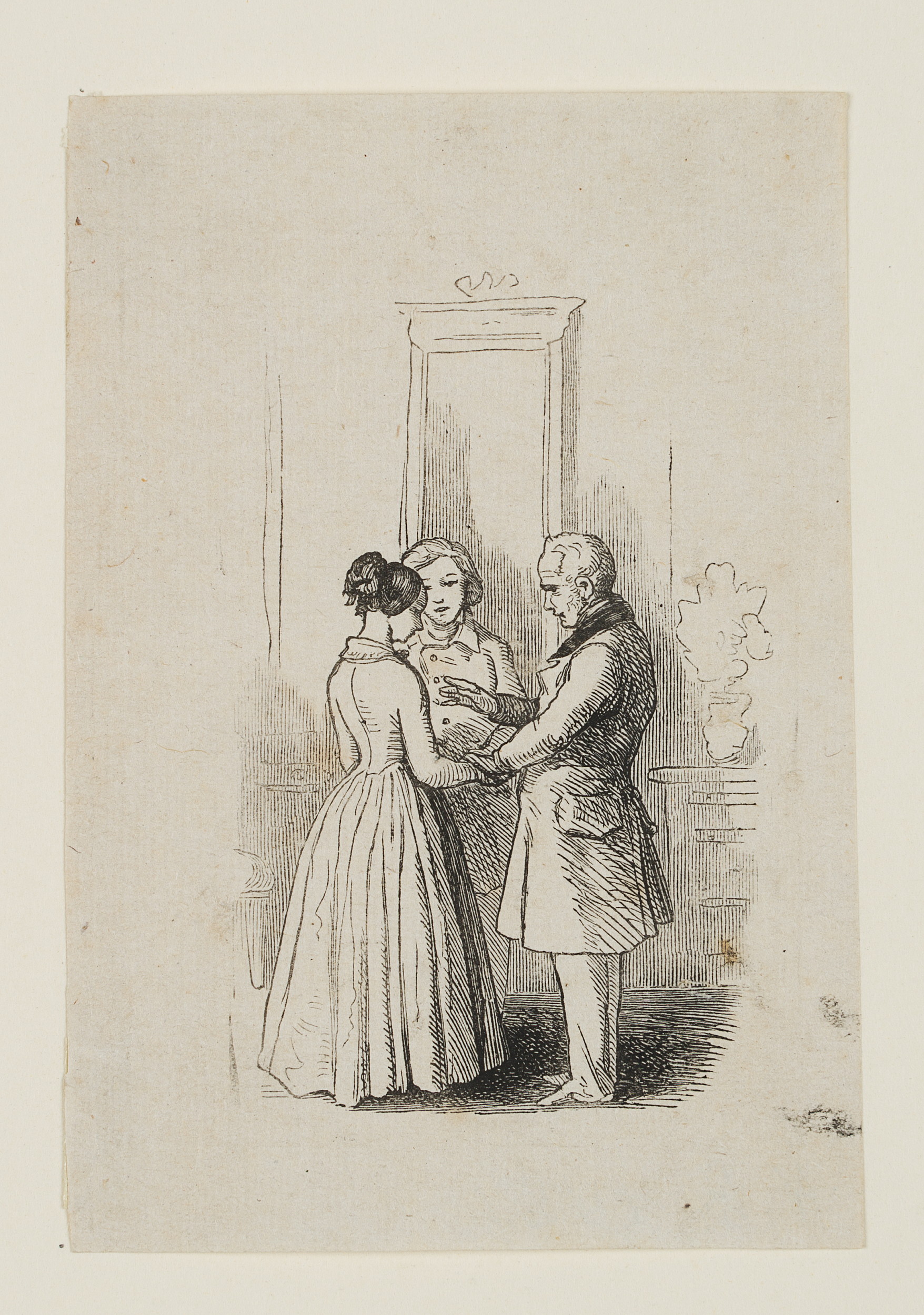 Ludwig Richter (1803 Dresden – 1884 ibid.), Father W blesses Ludwig Schl’s engagement to his daughter, proof copy, 1849, Wood engraving
