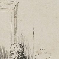 Ludwig Richter (1803 Dresden – 1884 ebd.), Vater W. segnet die Verlobung Ludwig Schl.’s mit seiner Tochter, Probedruck, 1849, Holzstich