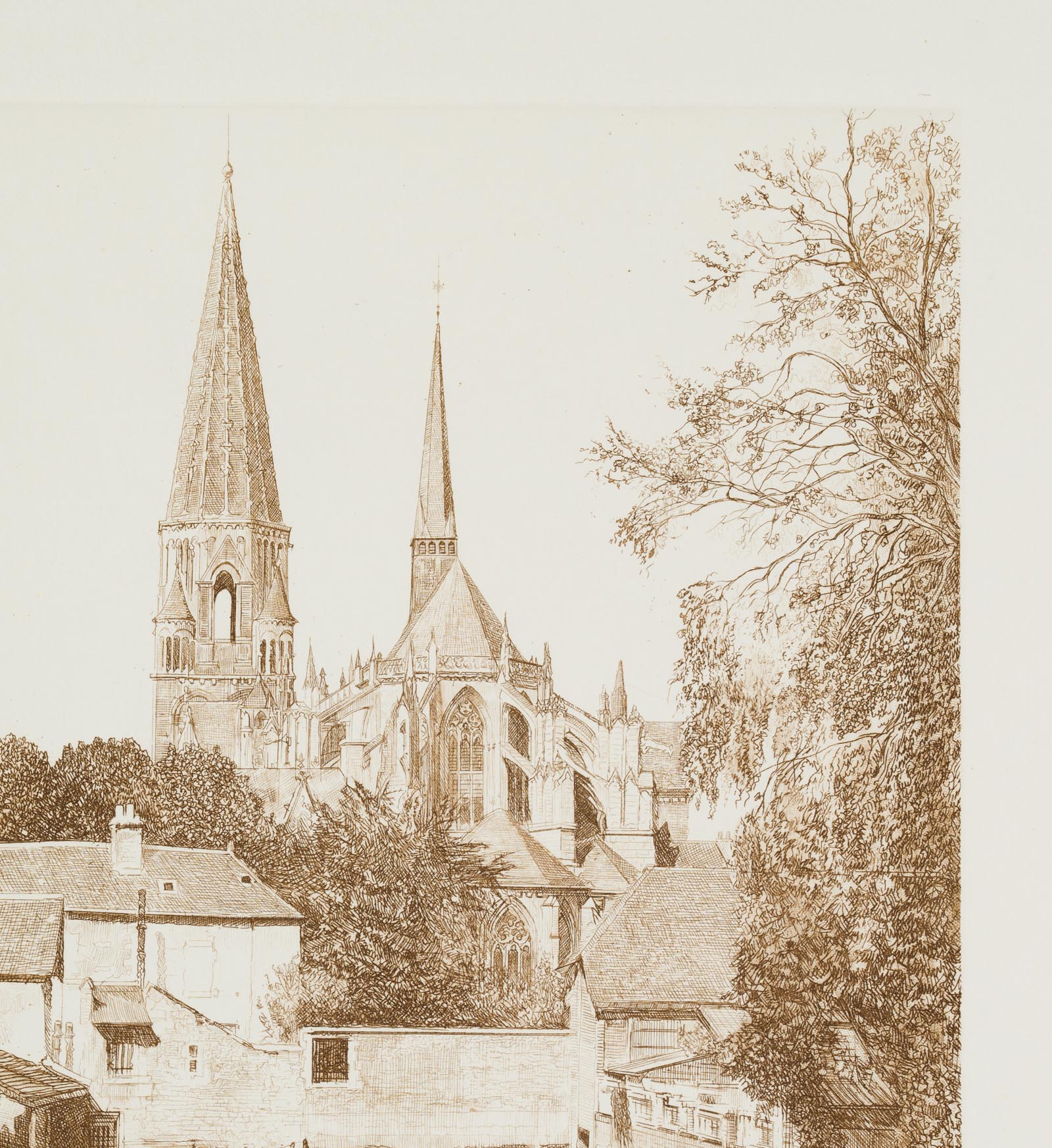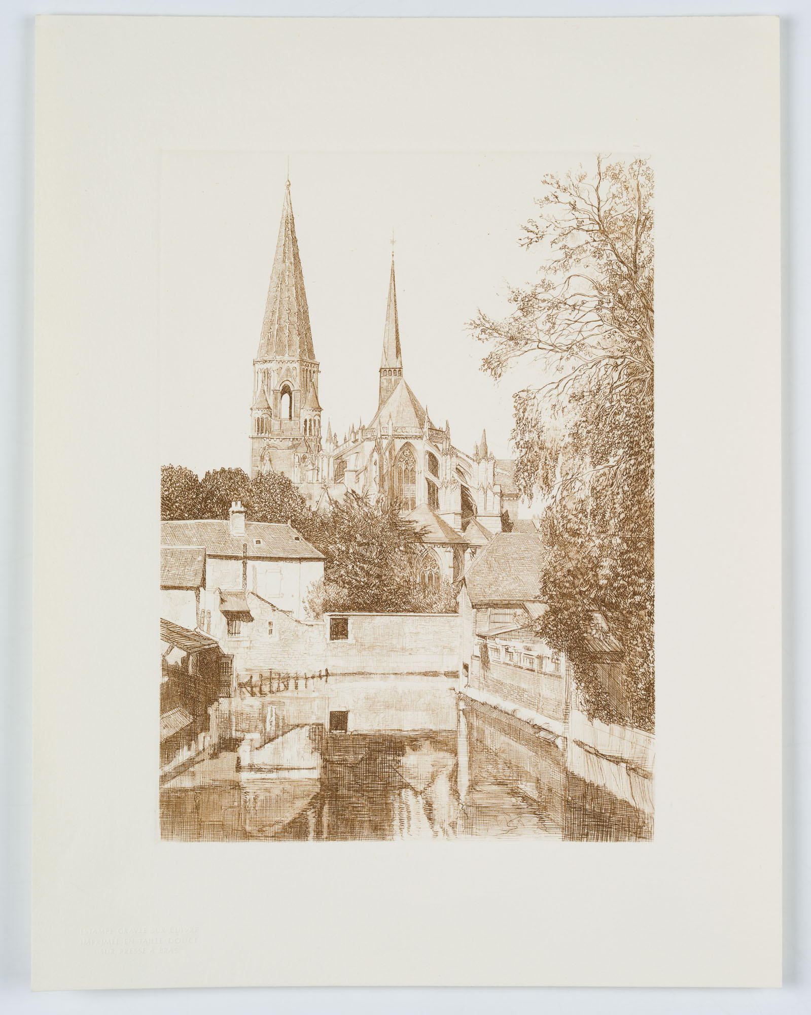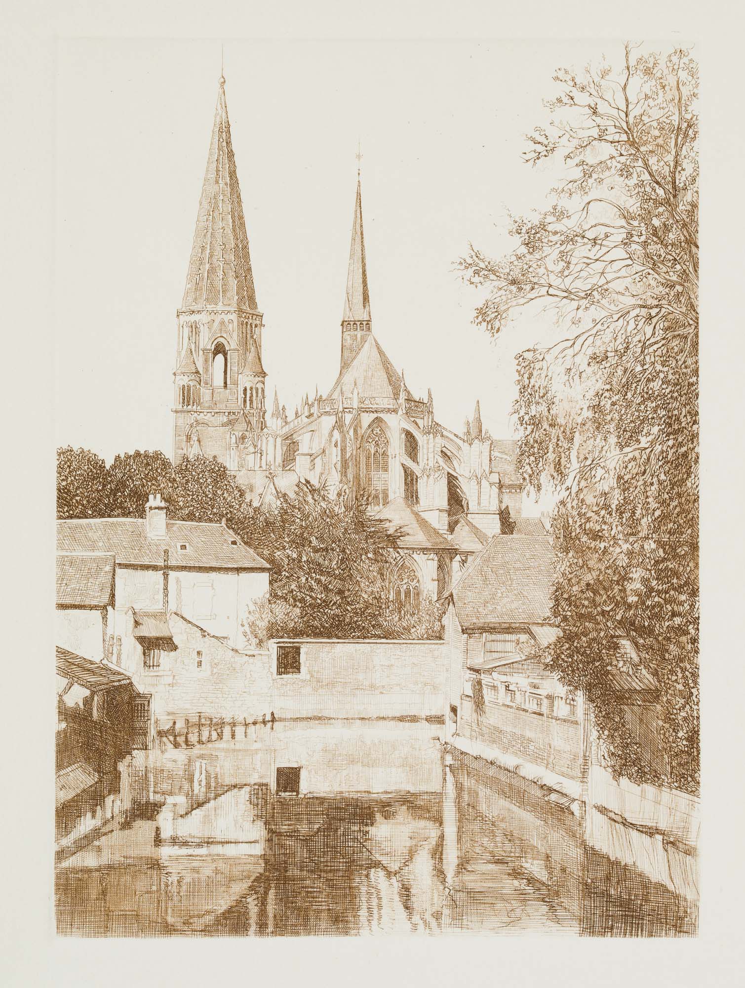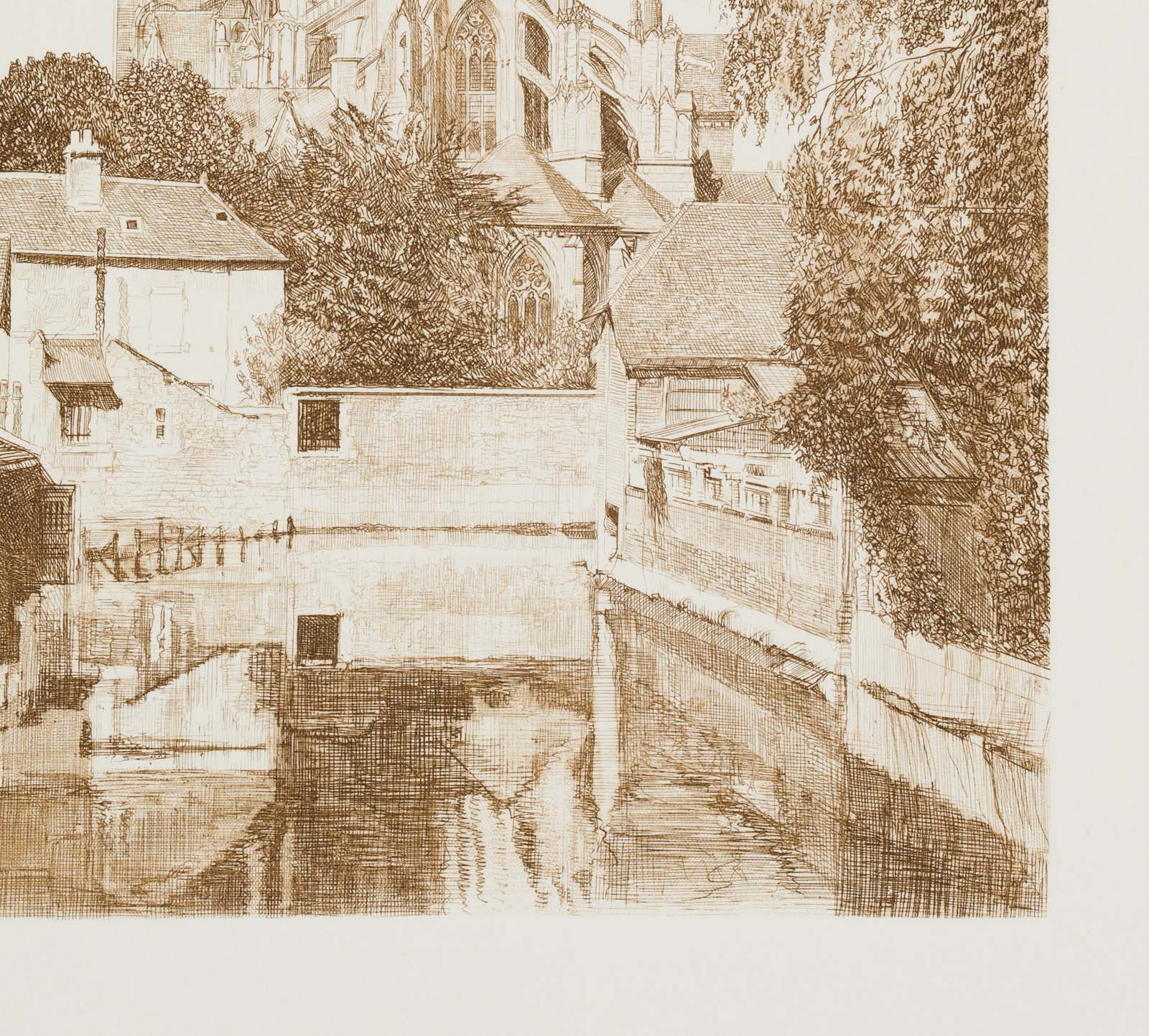 Léopold Robin (*1877 ), Französischer Kanal mit Blick auf gotische Kirche, 19. Jahrhundert, Radierung