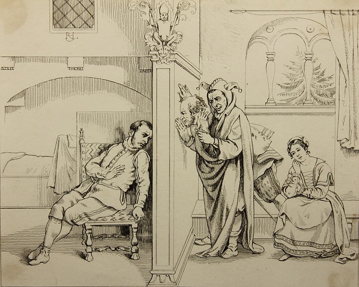 Ludwig Sigismund Ruhl (1794 Kassel – 1887 ibid.), Shakespeare, Twelfth Night, Act IV Sz2, 1840, Etching