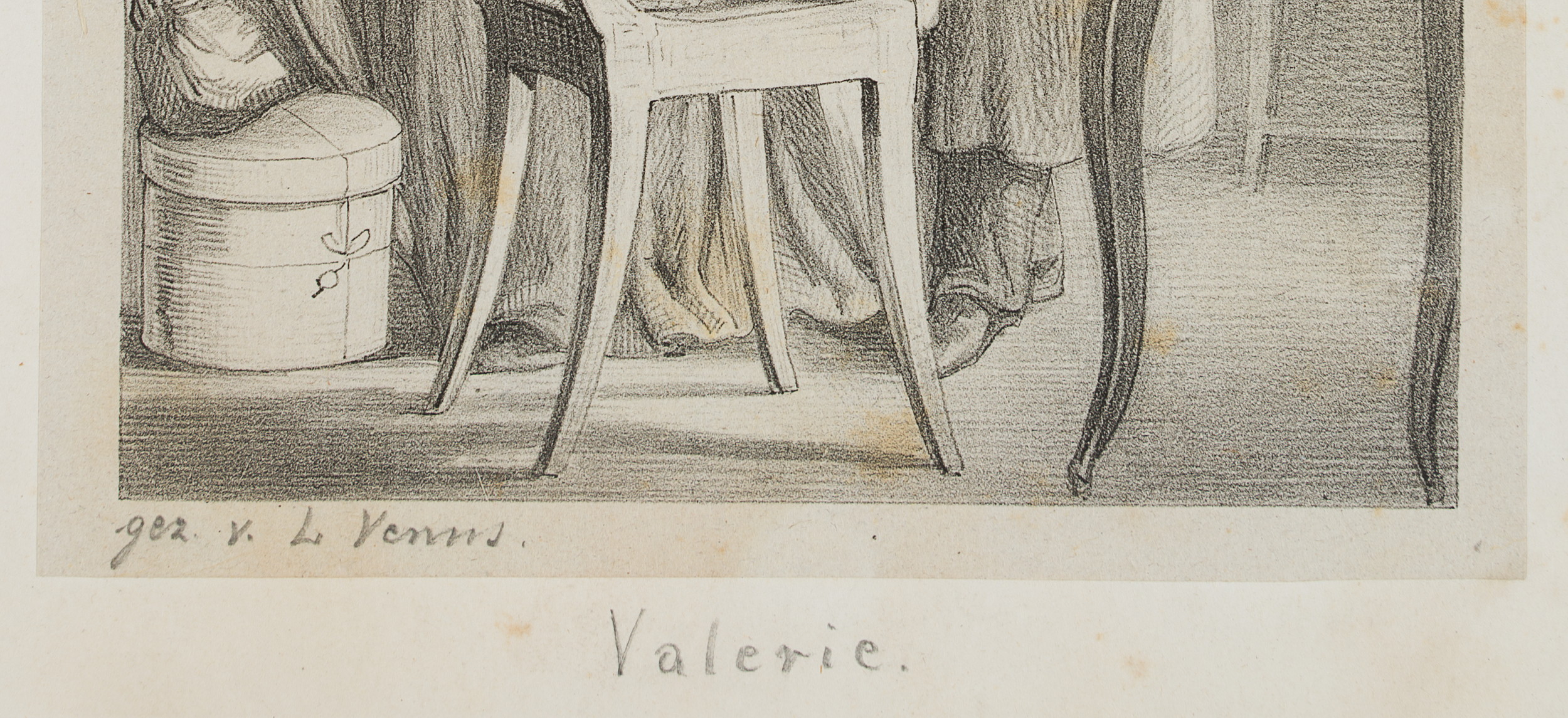 - Bezeichnung: Unten links signiert: “gez. v. L. Venus”. Unten eigenhändig bezeichnet: “Valerie.”.