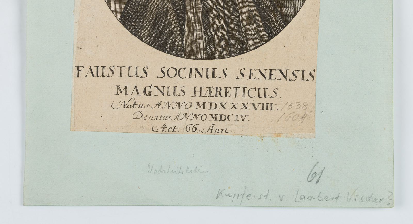 - Schlagworte: Neffe des Lelio Sozzini, italienischer Jurist, unitarischer Theologe, Leitfigur des Unitarismus, Sozinianismus, antitrinitarische Bewegung, Antitrinitarier, Porträt, Religiös, Italien, Barock, 1700-1749