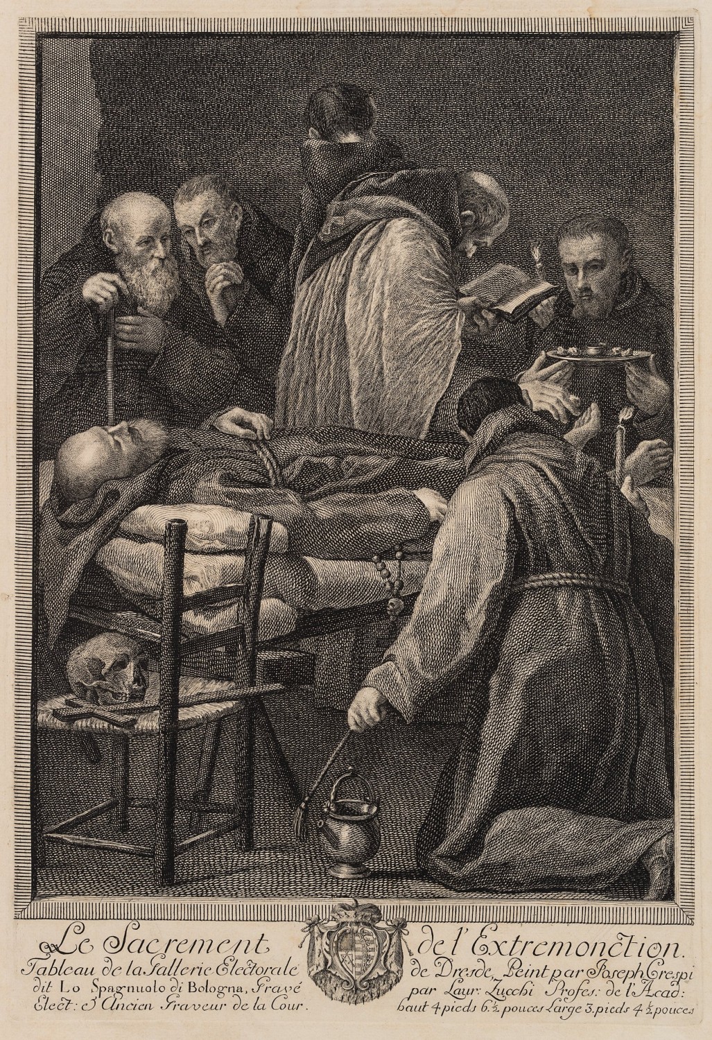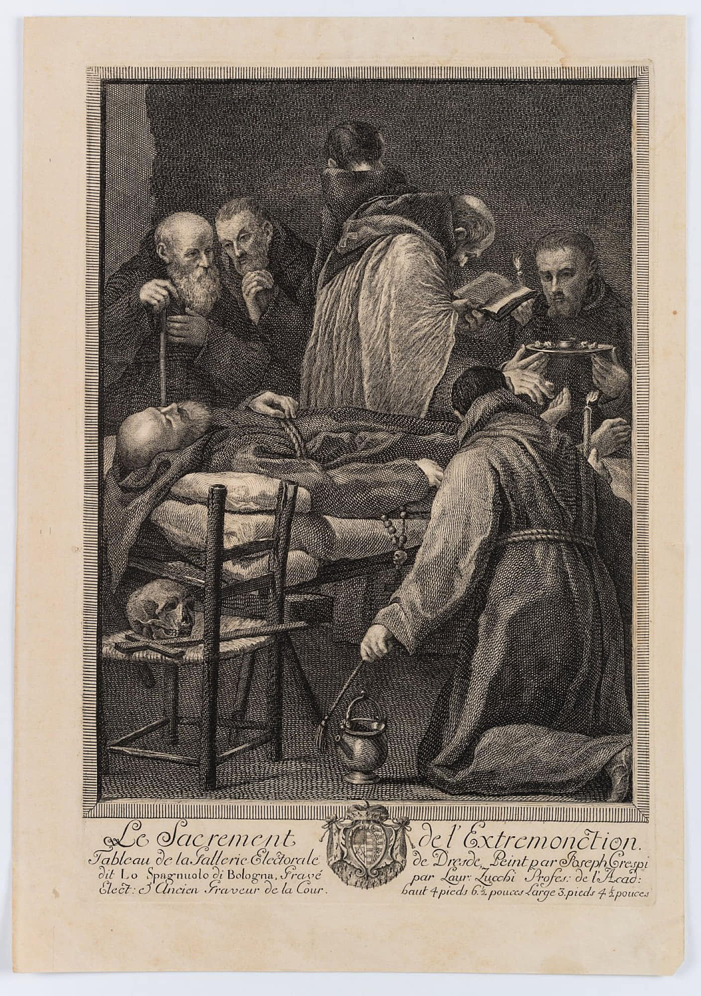Lorenzo Zucchi (1704 Venedig – 1779 Dresden), Sakrament der Krankensalbung, Letzte Ölung, um 1750, Kupferstich