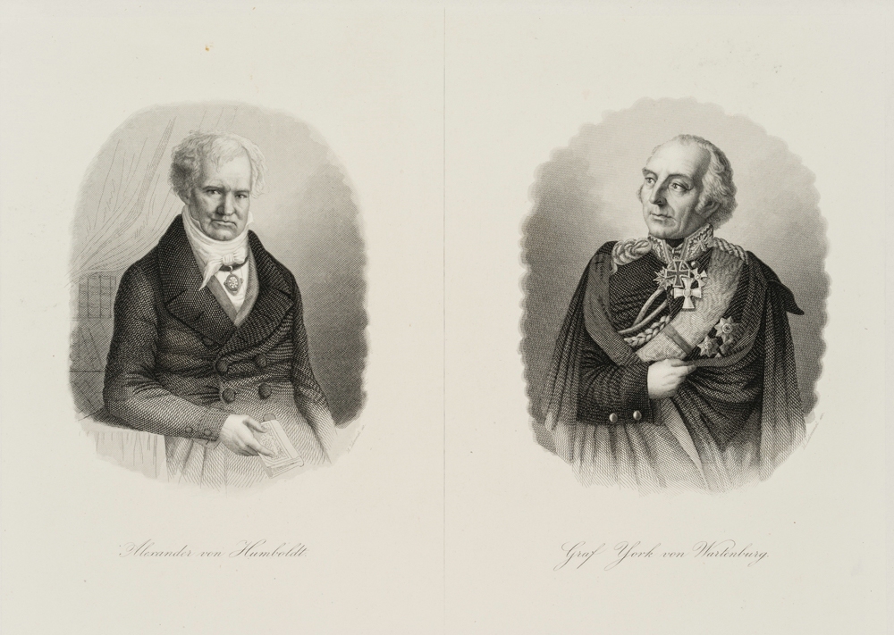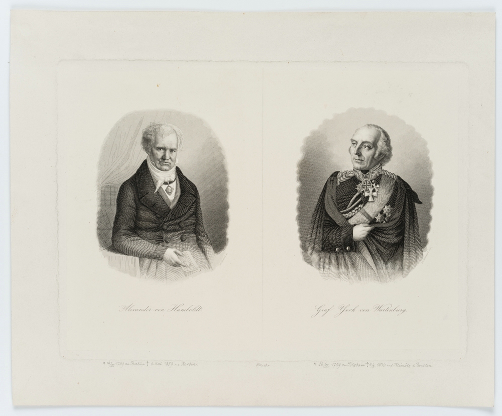 Martin Moritz Lämmel (*1849 Kulkwitz) nach Unbekannt (19. Jahrhundert), Porträt Alexander von Humboldt und Graf Yorck, 19. Jahrhundert, Stahlstich