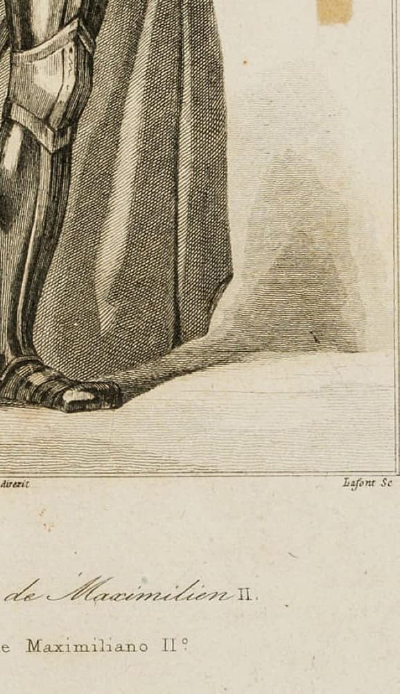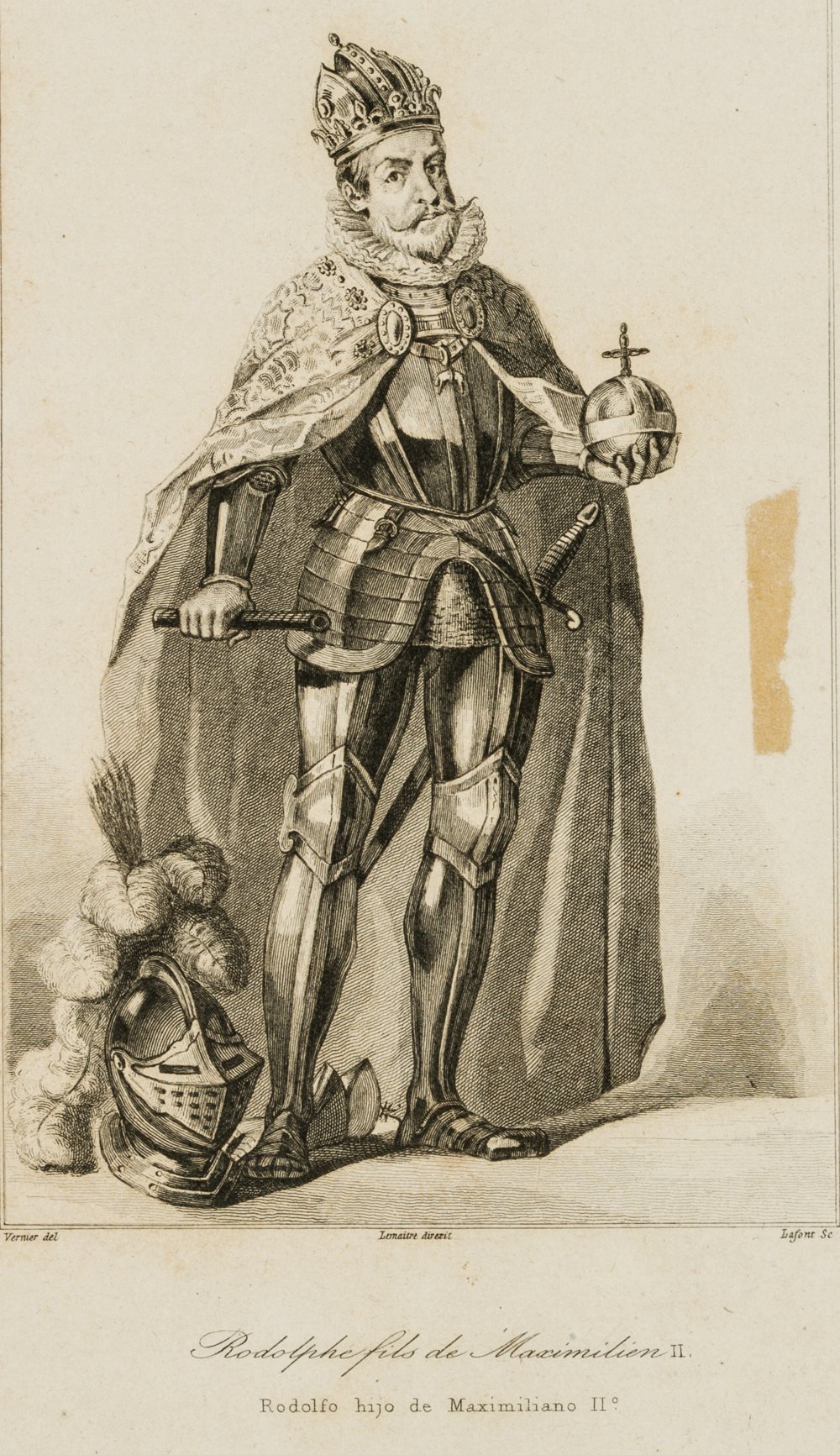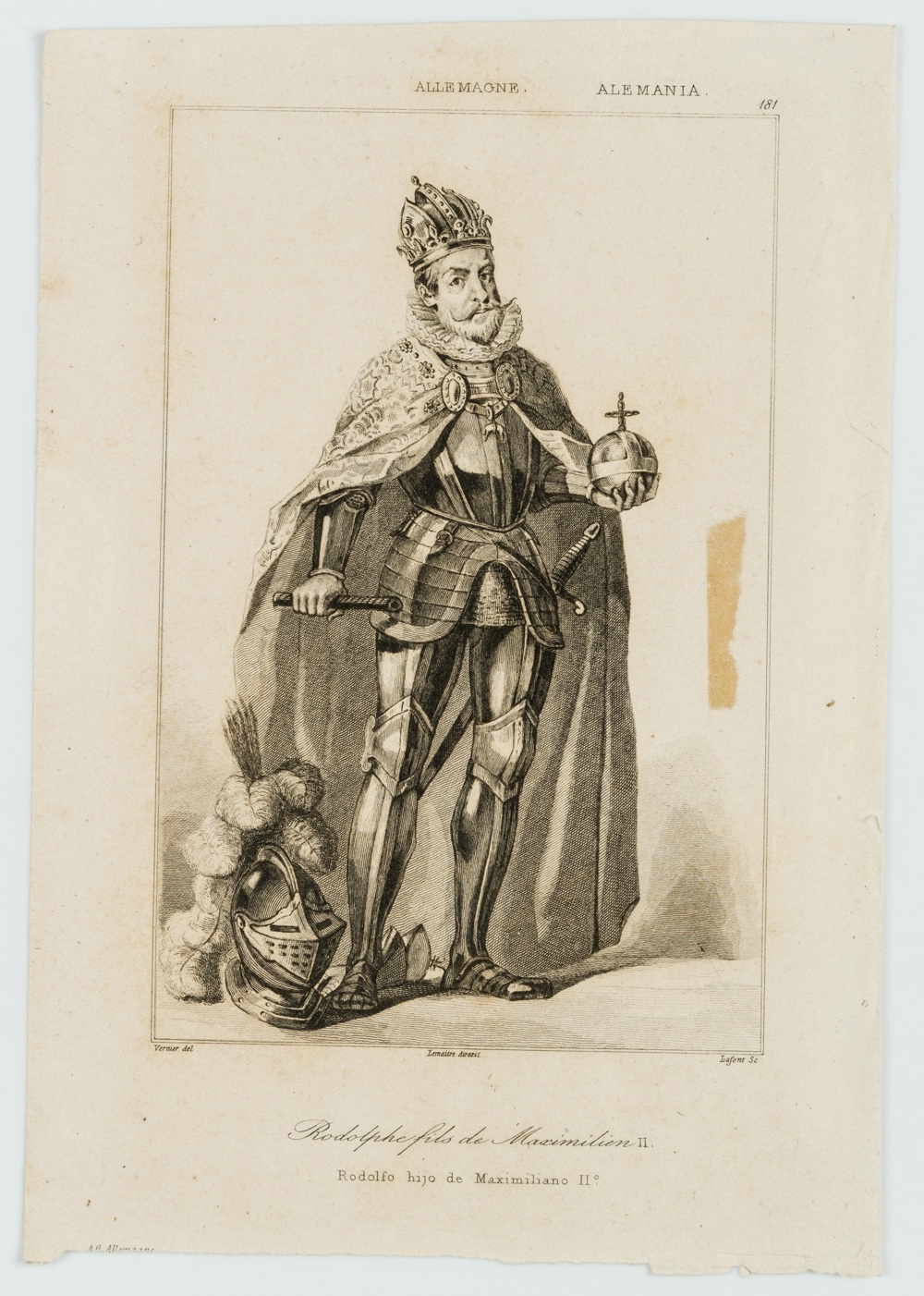 - Inscription: Signed “Vernier del”, “Lemaitre direxit” and “Lafont Sc.” below the depiction and inscribed with the sitter’s name “Rodolphe fils de Maximilien II.