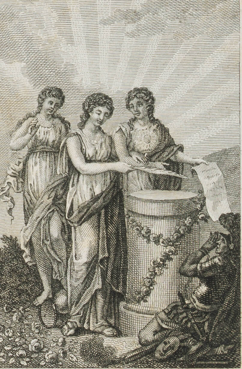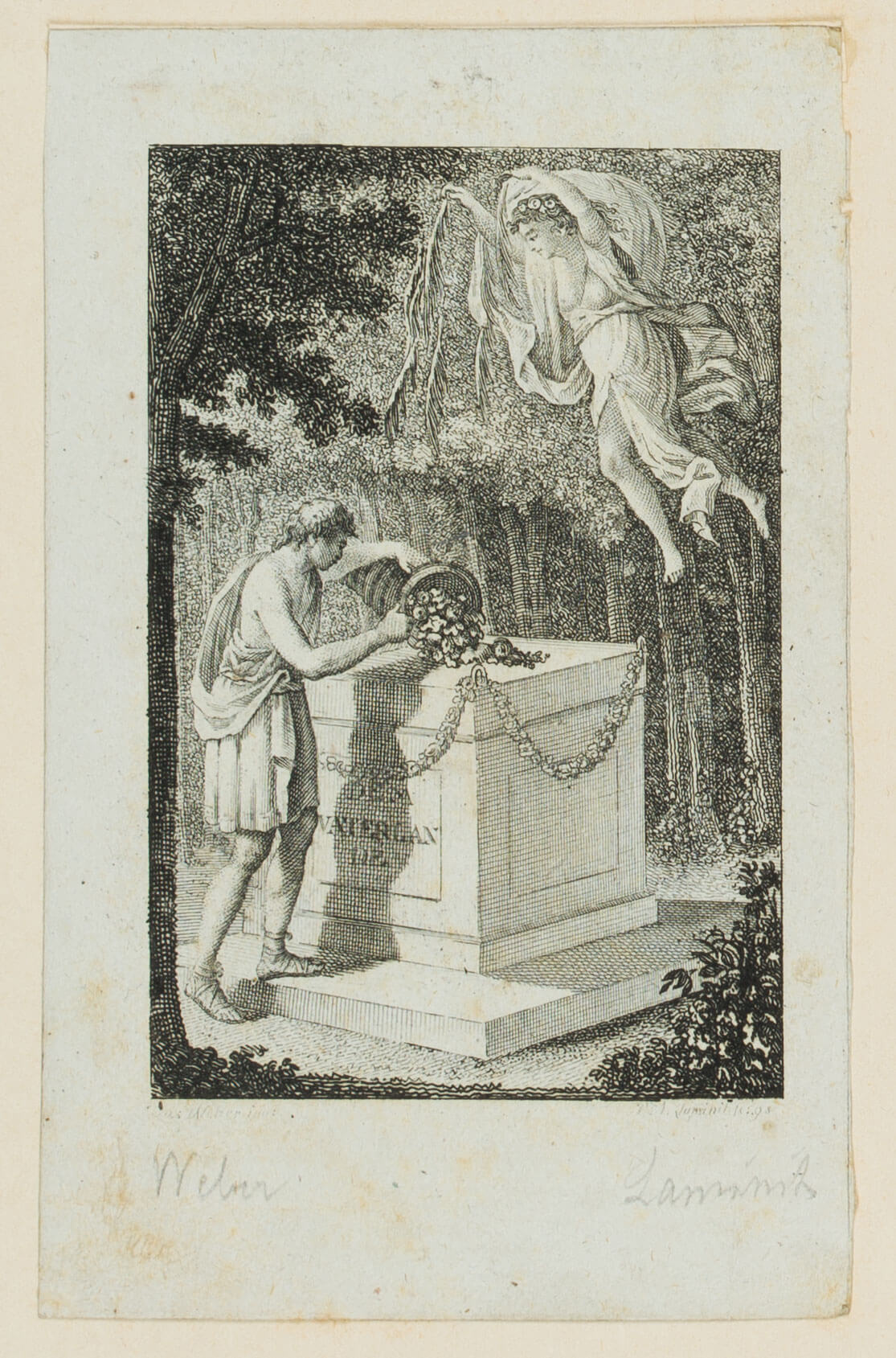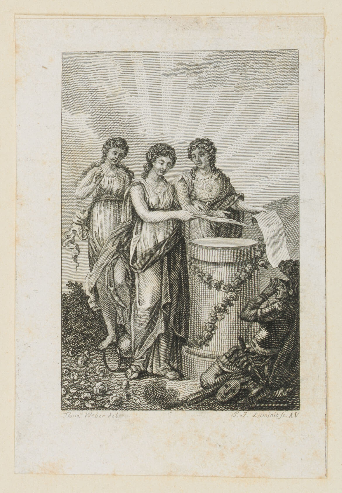Paul Jakob Laminit (1773 Augsburg – 1831 ebd.) nach Thomas Weber (1761 Augsburg – 1828 ebd.), Drei allegorisch antikisierende Illustrationen, um 1800, Kupferstich