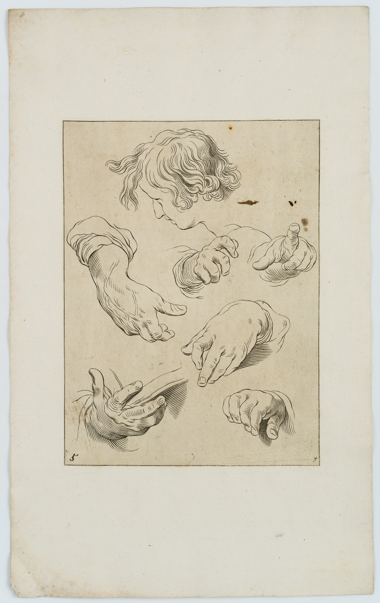 Joseph Lamorlet (1626 Antwerp – around 1694 ibid.) after Abraham Bloemaert (1566 Dordrecht – 1651 Utrecht), Drawing template Hand & Head Studies, , Copper engraving