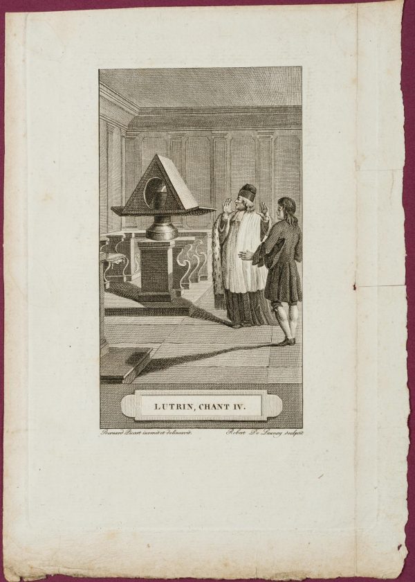 - Inscription: Signed lower left: “Bernard Picart invenit et delineavit”, next to it signed “Robert De Launay sculpsit. Inscribed in the print with “LUTRIN, CHANT IV.
