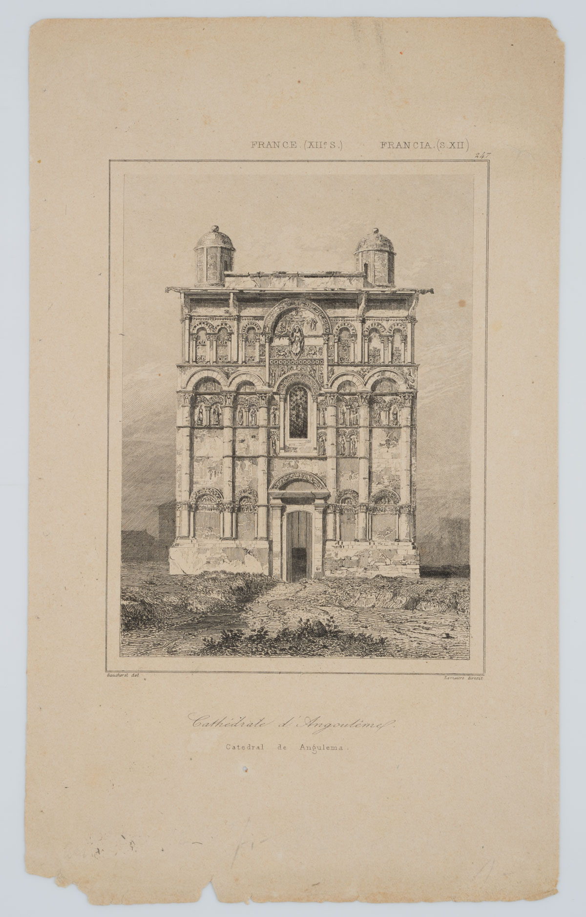 - Bezeichnung: Unten links signiert mit “Gaucherel del” und rechts mit “Lemaitre direxit”, darunter beschriftet mit “Cathédrale d’Angoulême”. Das Blatt trägt die Nummer “247”.