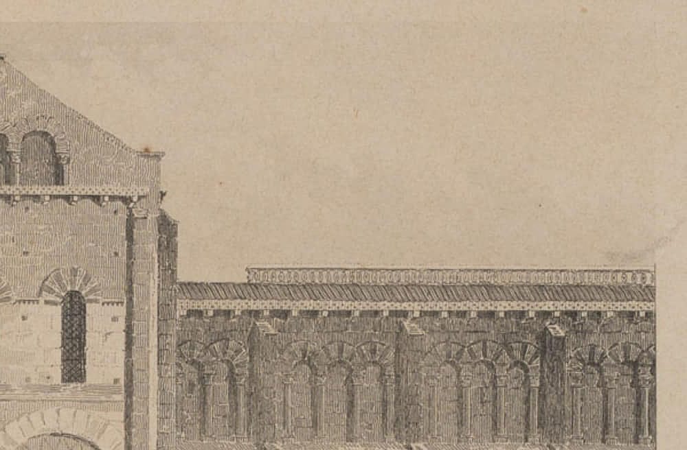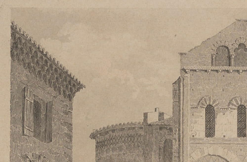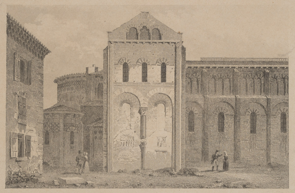 Augustin Francois Lemaitre (1797 Paris – 1870 ibid.) after L. Gaucherel (19th century), Side view of the church of Saint-Austremoine in Issoire, 19th century, Steel engraving