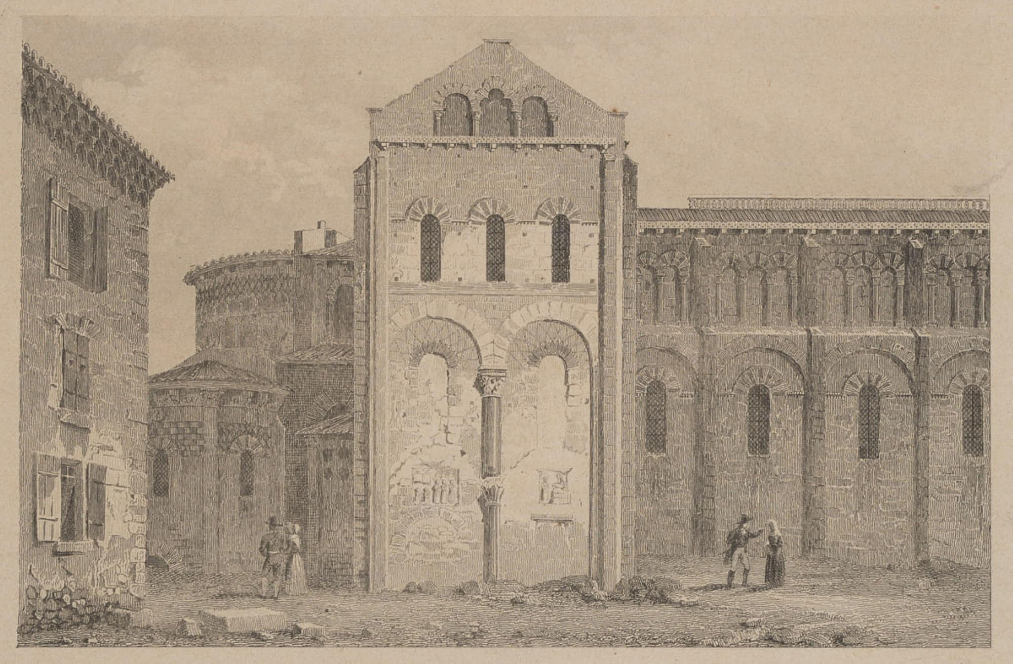 Augustin Francois Lemaitre (1797 Paris – 1870 ebd.) nach L. Gaucherel (19. Jahrhundert), Seitenansicht von der Kirche Saint-Austremoine in Issoire, 19. Jahrhundert, Stahlstich