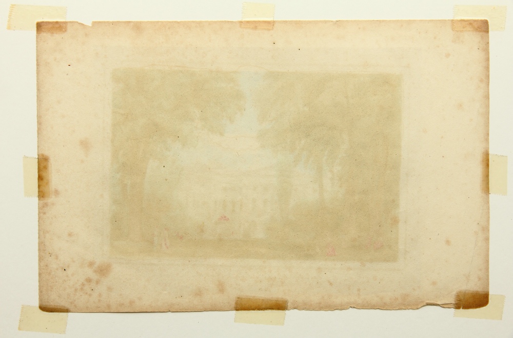 - Zustand: Sehr guter Zustand. Auf dem gesamten Blatt sind blasse Stockflecken erkennbar. Das Blatt ist schief in das Passepartout montiert.