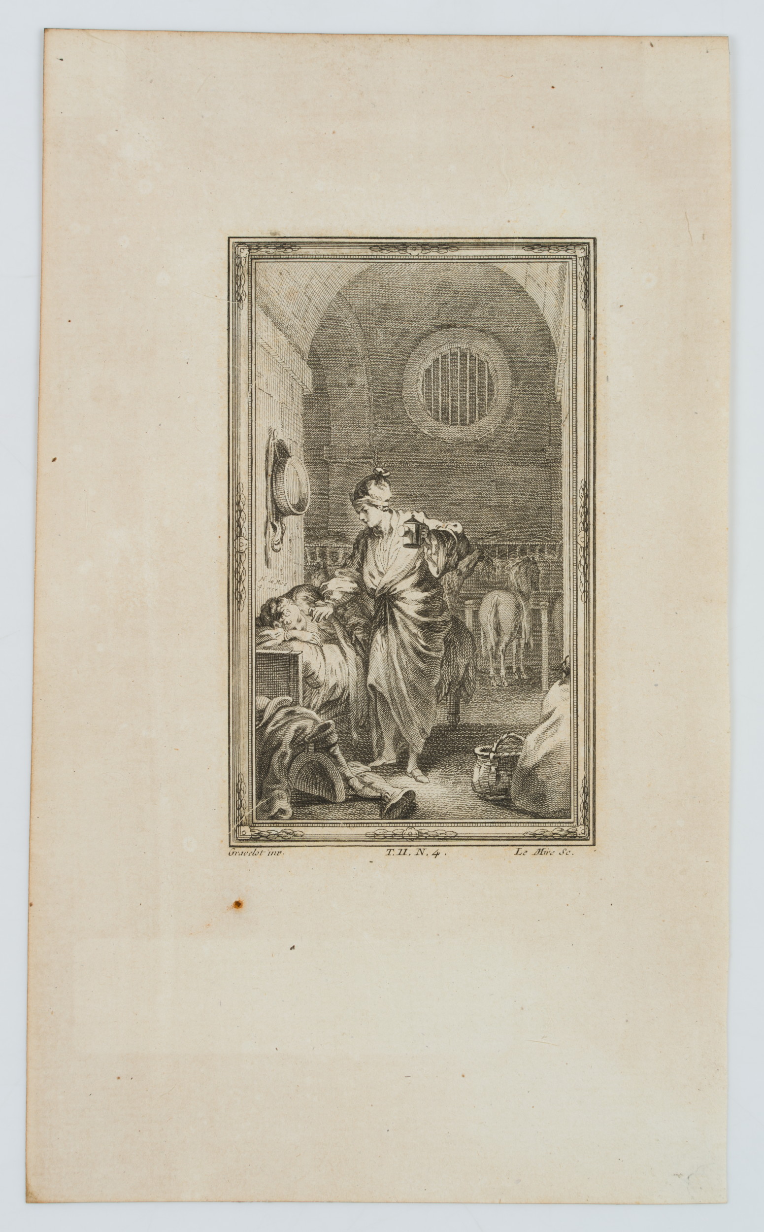 Noël Lemire (1724 Rouen – 1801 Paris) after Hubert-Francois Gravelot (born 1699 ), Sleeper in the stable, 1757, Etching