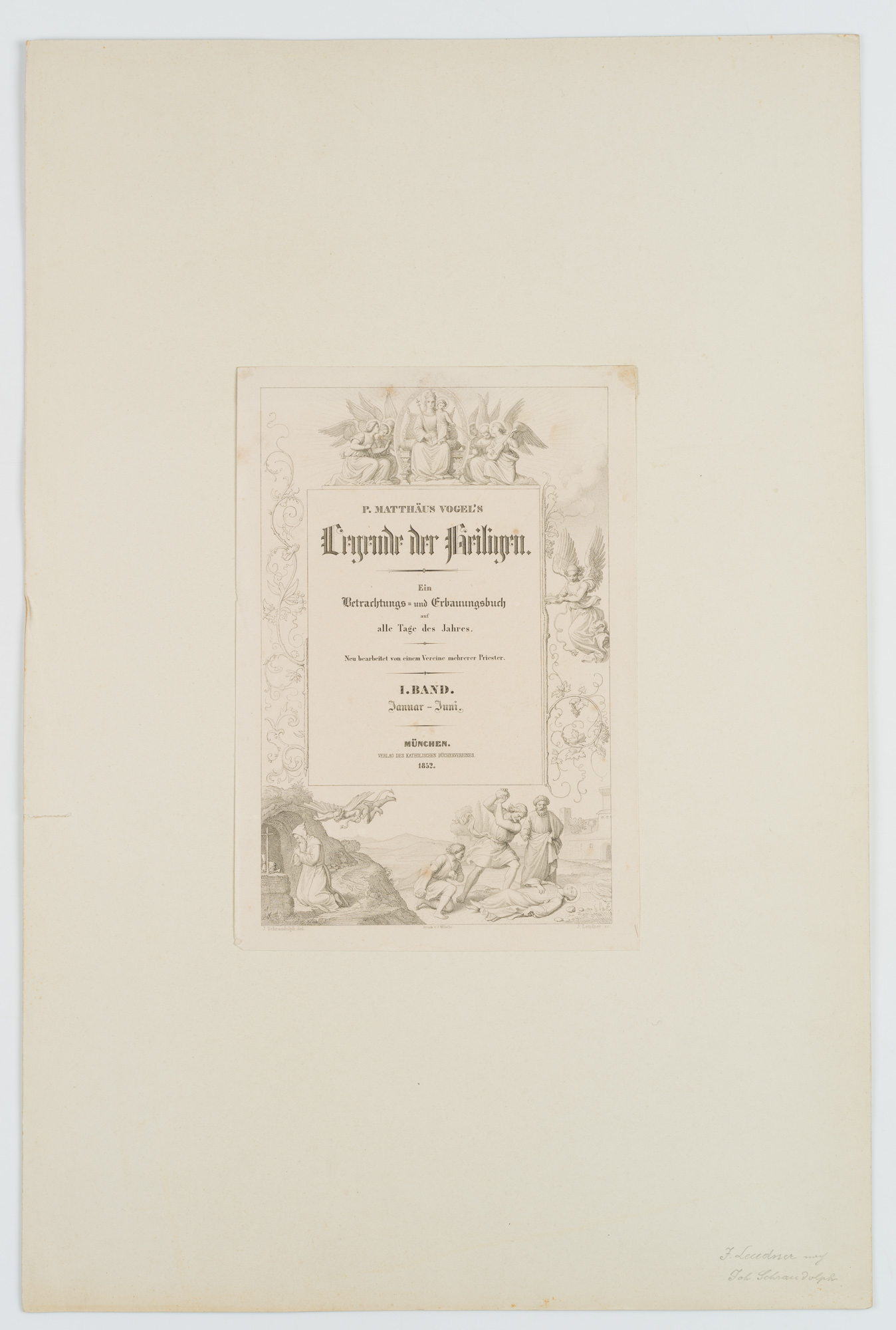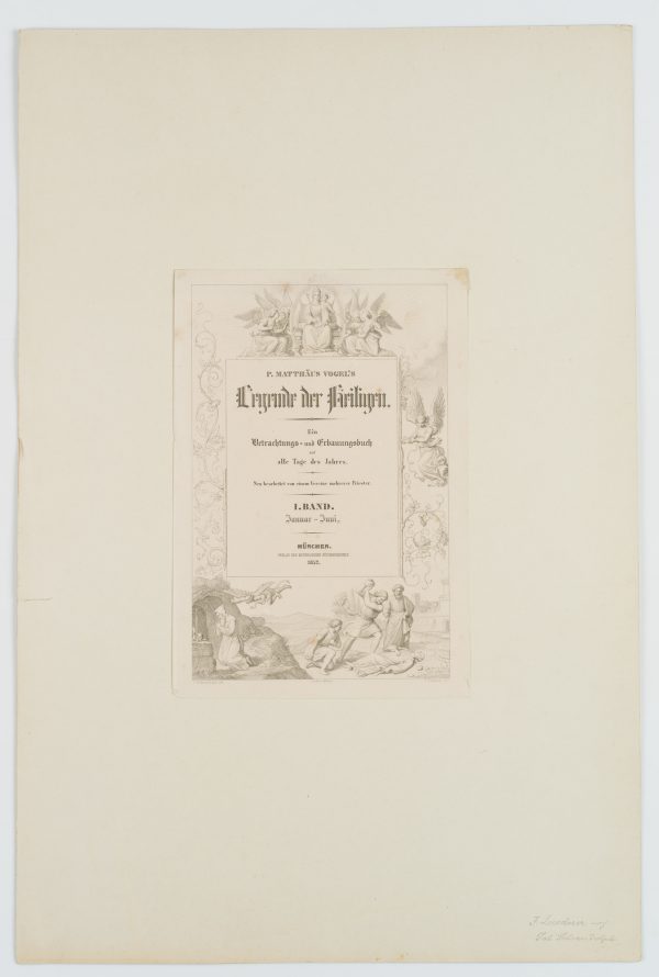 Joseph Leudner (1813 Oberkirch – 1853 München) nach Johann von Schraudolph (1808 Oberstdorf – 1869 München), Titelseite ‘Legende der Heiligen’ von P. Matthäus Vogel, 1852, Kupferstich