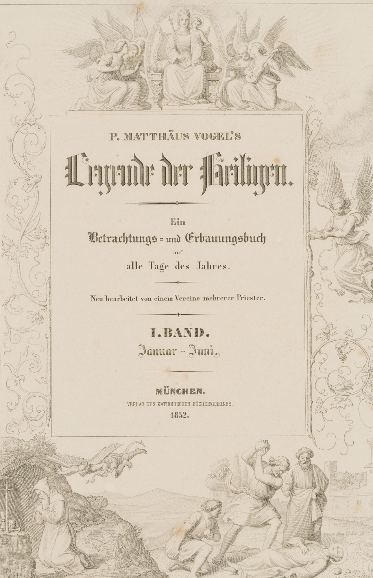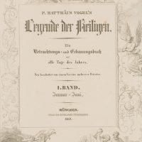 - Description: P. Matthew Vogel. Legend of the Saints. A book of contemplation and edification for all days of the year. Newly edited by an association of several priests. Volume I. January – June. Munich. Publisher of the Catholic Book Society, 1852.