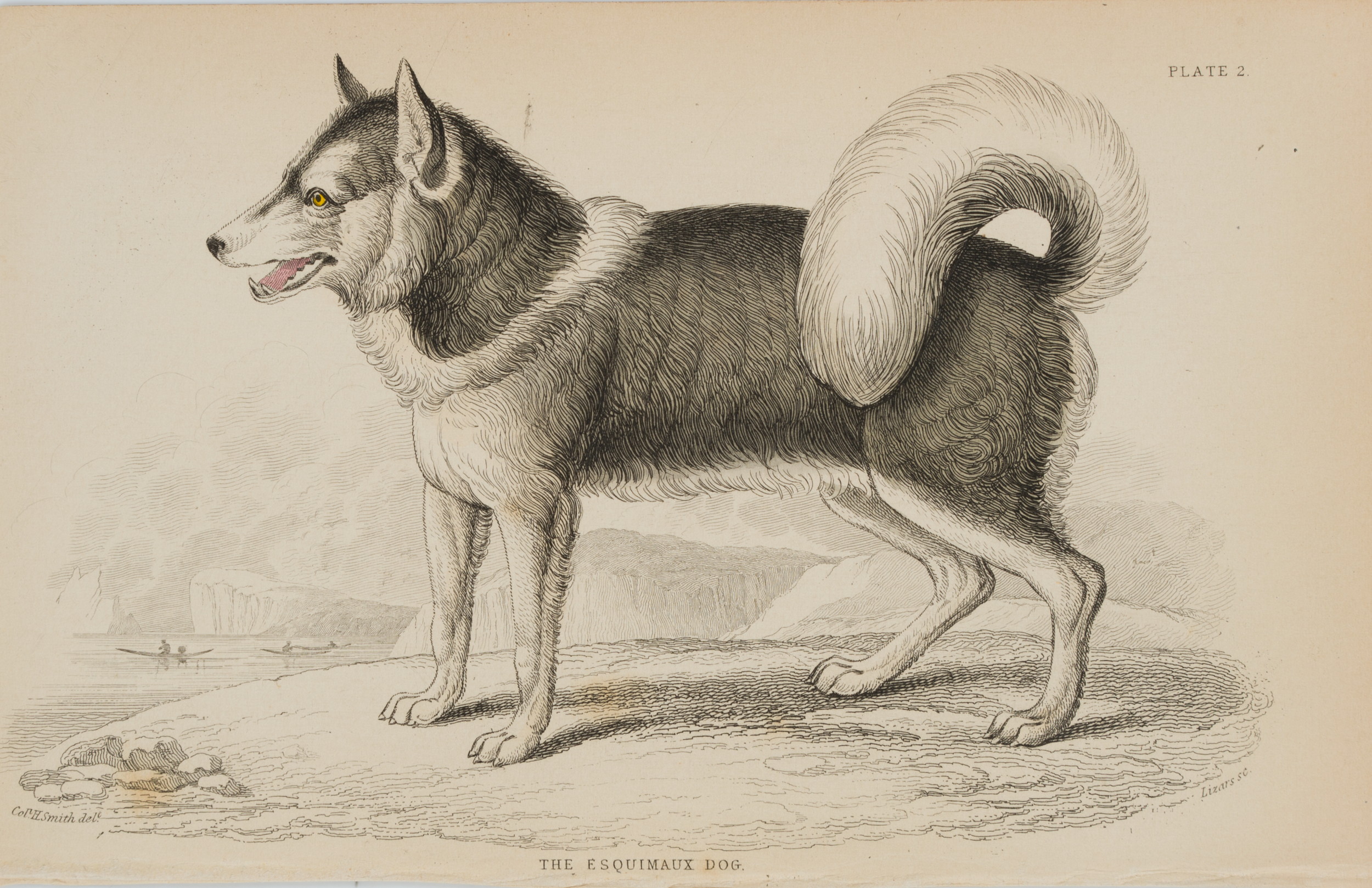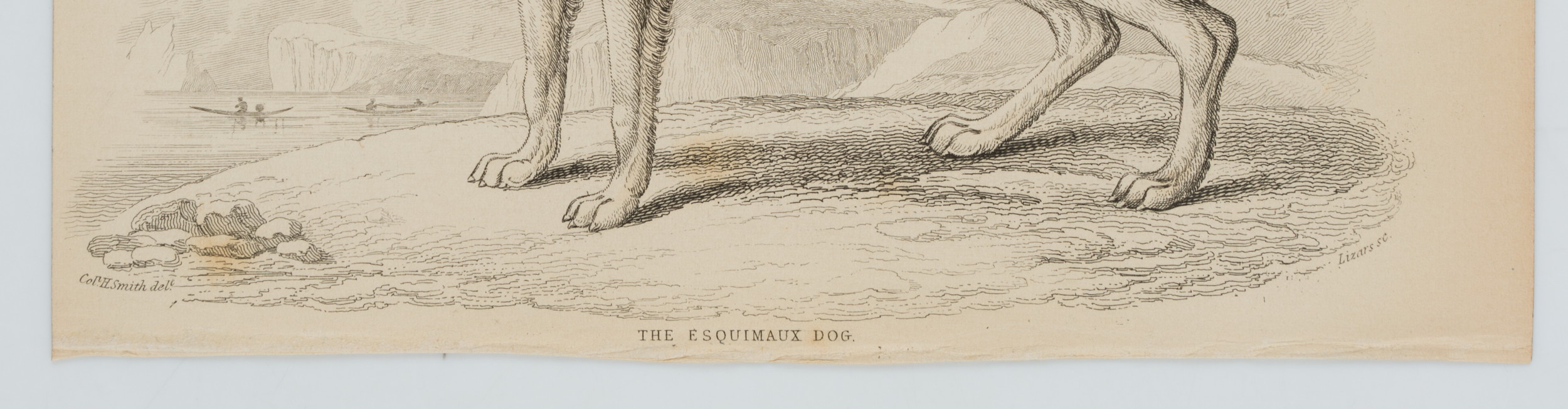 - Inscription: Lower middle signed in the printing plate: “Col H. Smith del. | Lizars sc.”. Lower middle inscribed in the printing plate: “The Esquimaux Dog”. Upper right numbered in the printing plate: “Plate 2”.