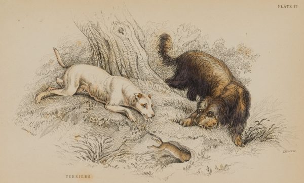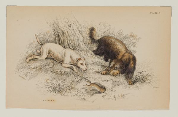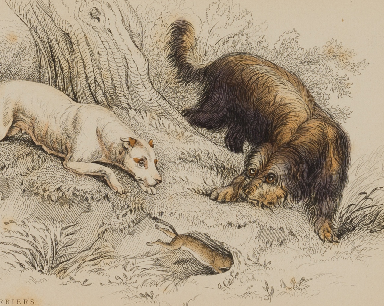 William Home Lizars (1788 Edinburgh – 1859 Jedburgh) after Sir John James Stewart (1779 – 1849 ), Terriers, Terrier on the Hunt, 1848, Steel engraving