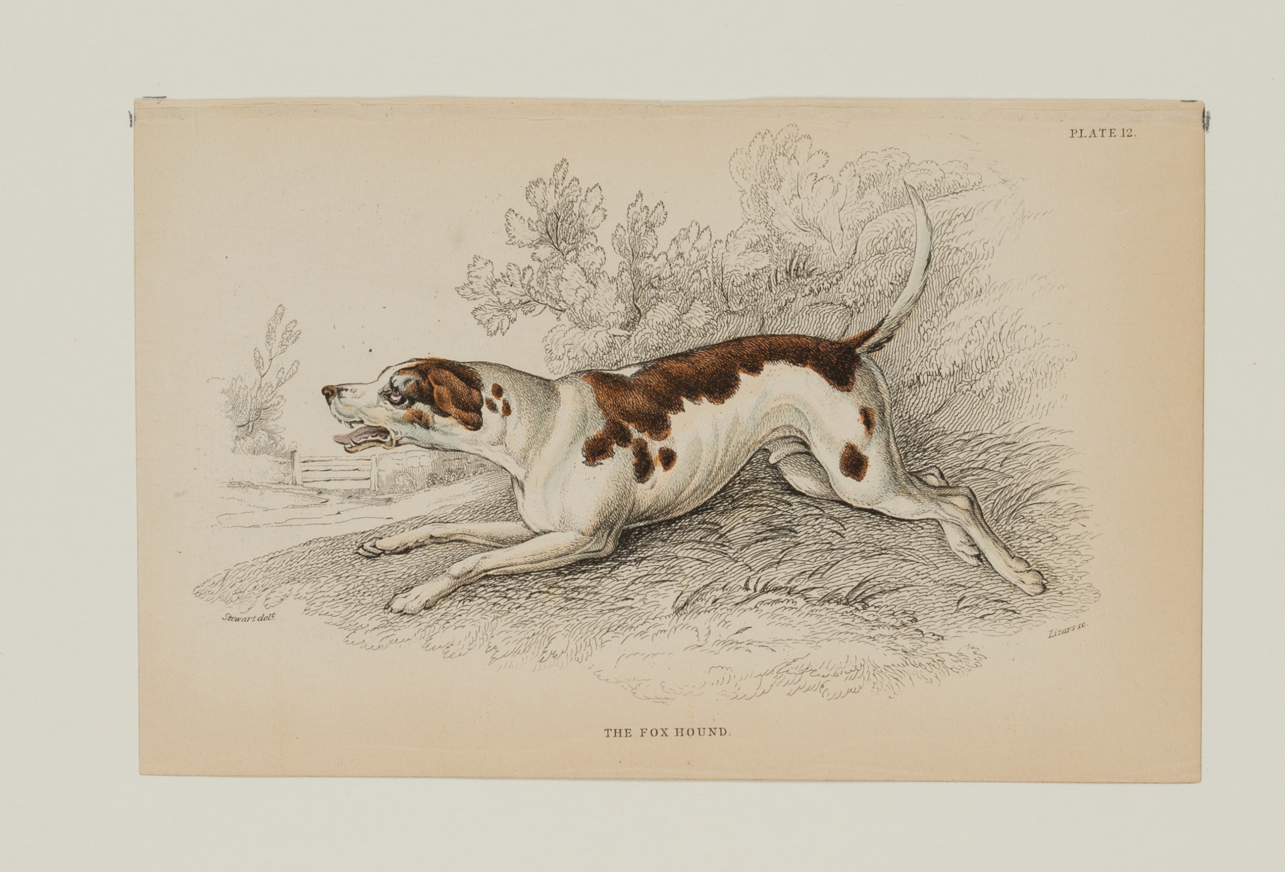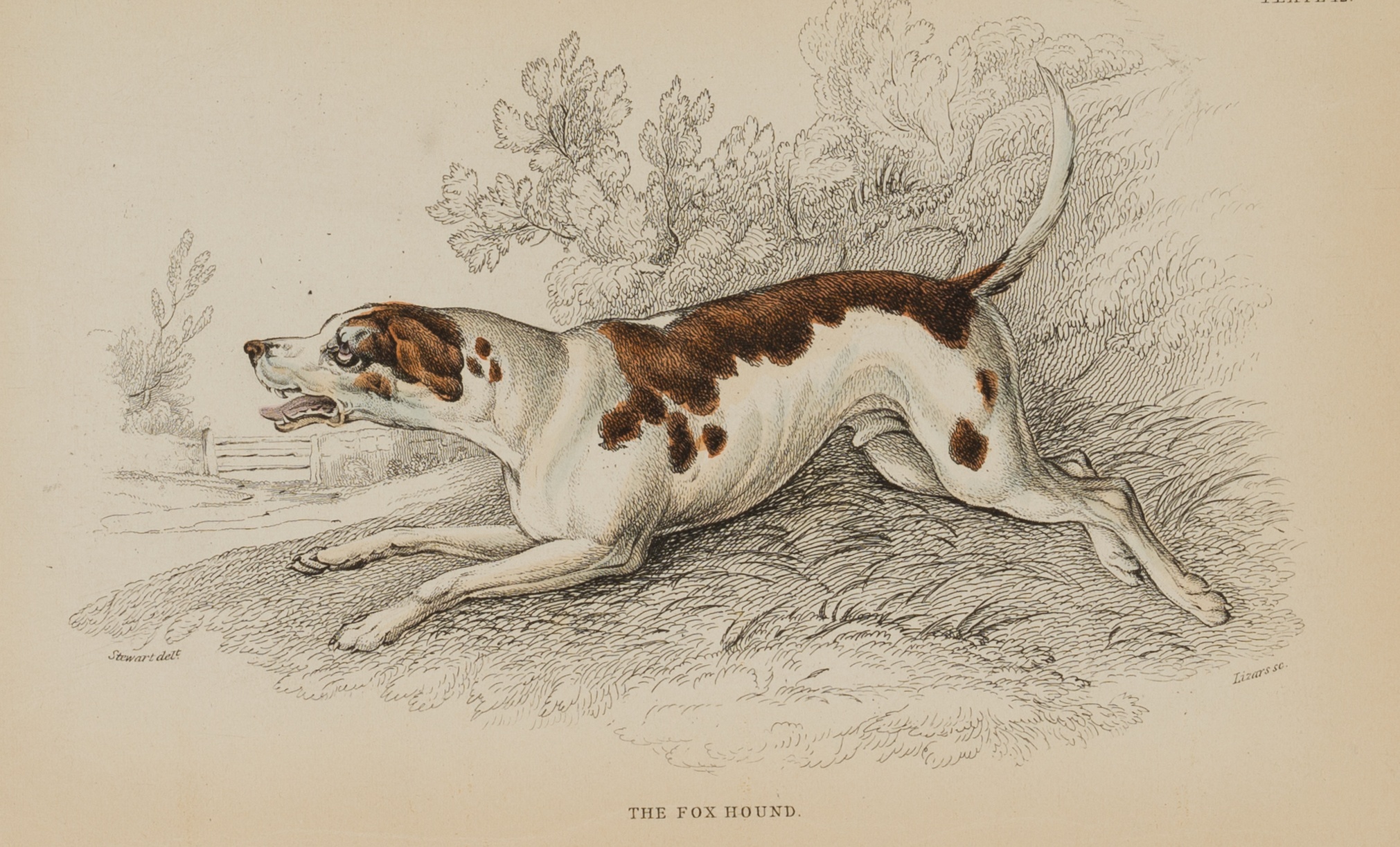 William Home Lizars (1788 Edinburgh – 1859 Jedburgh) after Sir John James Stewart (1779 – 1849 ), The Fox Hound, 1848, Steel engraving