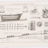 Matthäus Aigner (1818 – 1886 ), Construction drawings, notes on ‘railways on inclined surfaces’, floor plans and various views of traction engines, c. 1830, Copper engraving