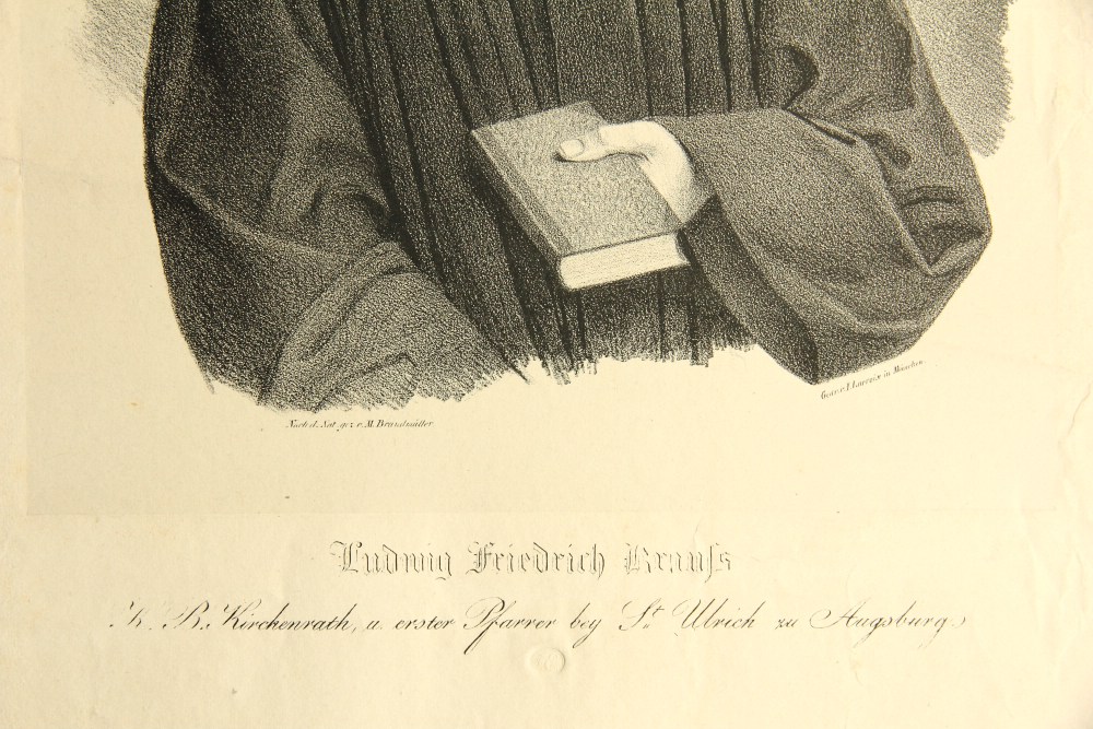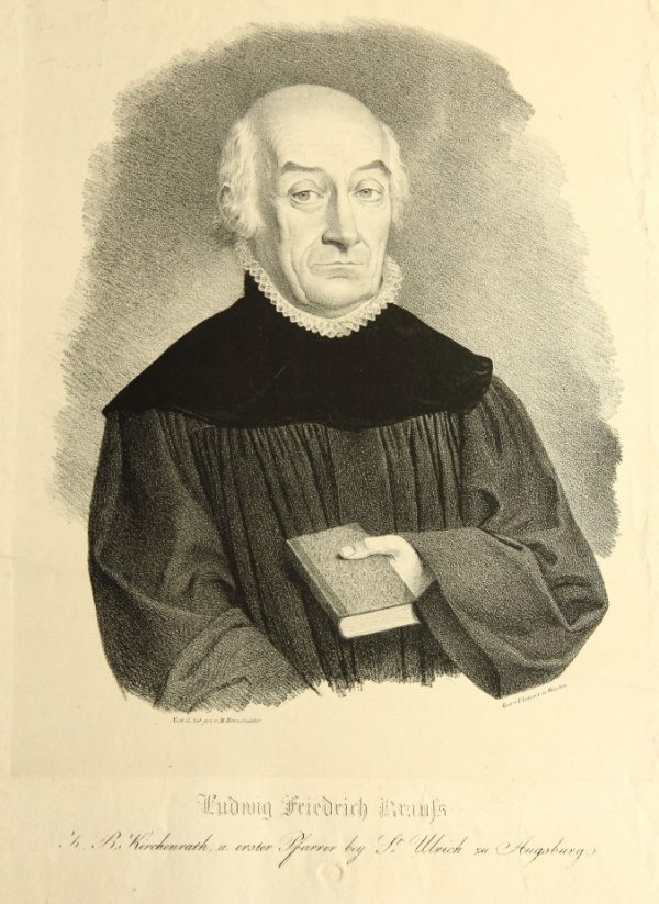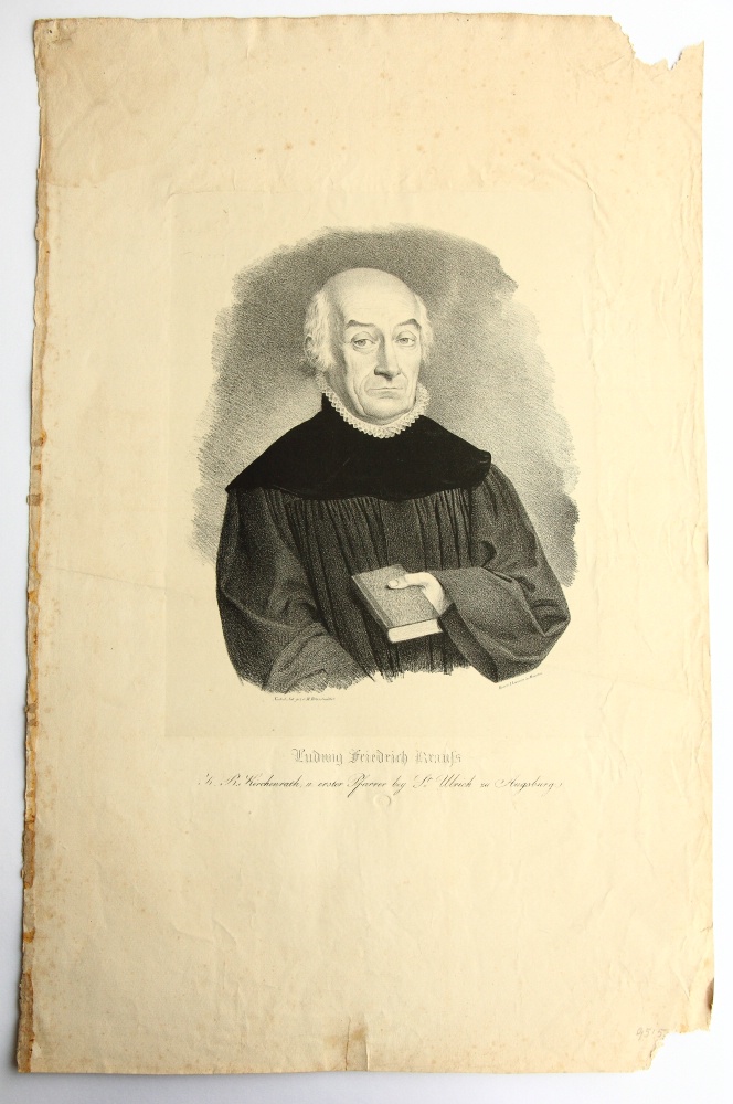 Michael Brandmüller (1793 Wien – 1852 ebd.), Porträt d Ludwig Fr. Krauss, Pfarrer zu Augsburg, 19. Jahrhundert, Lithographie