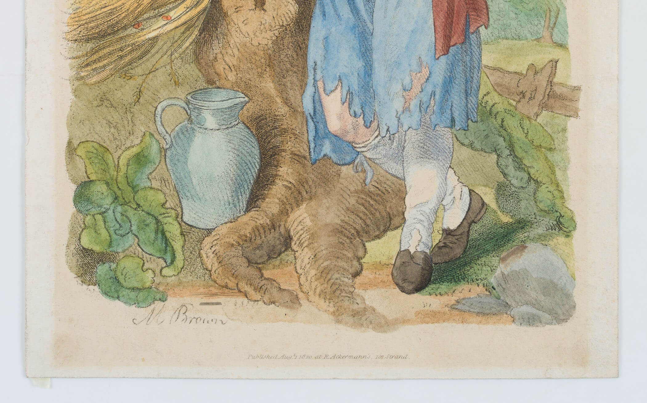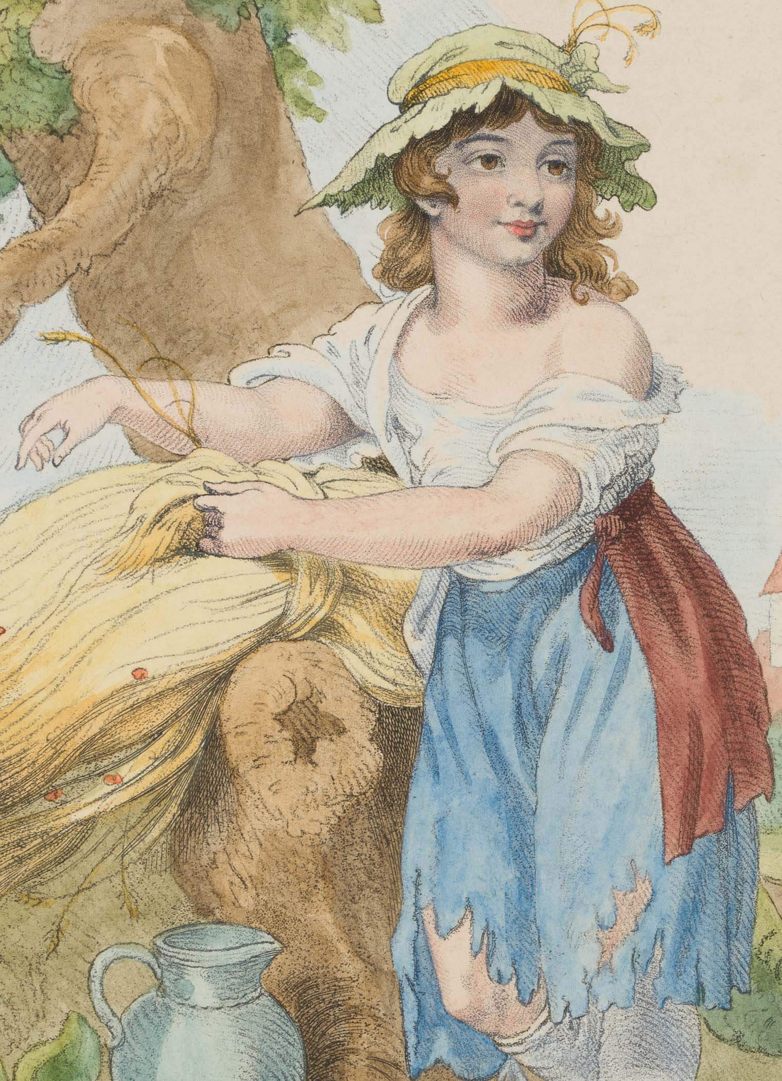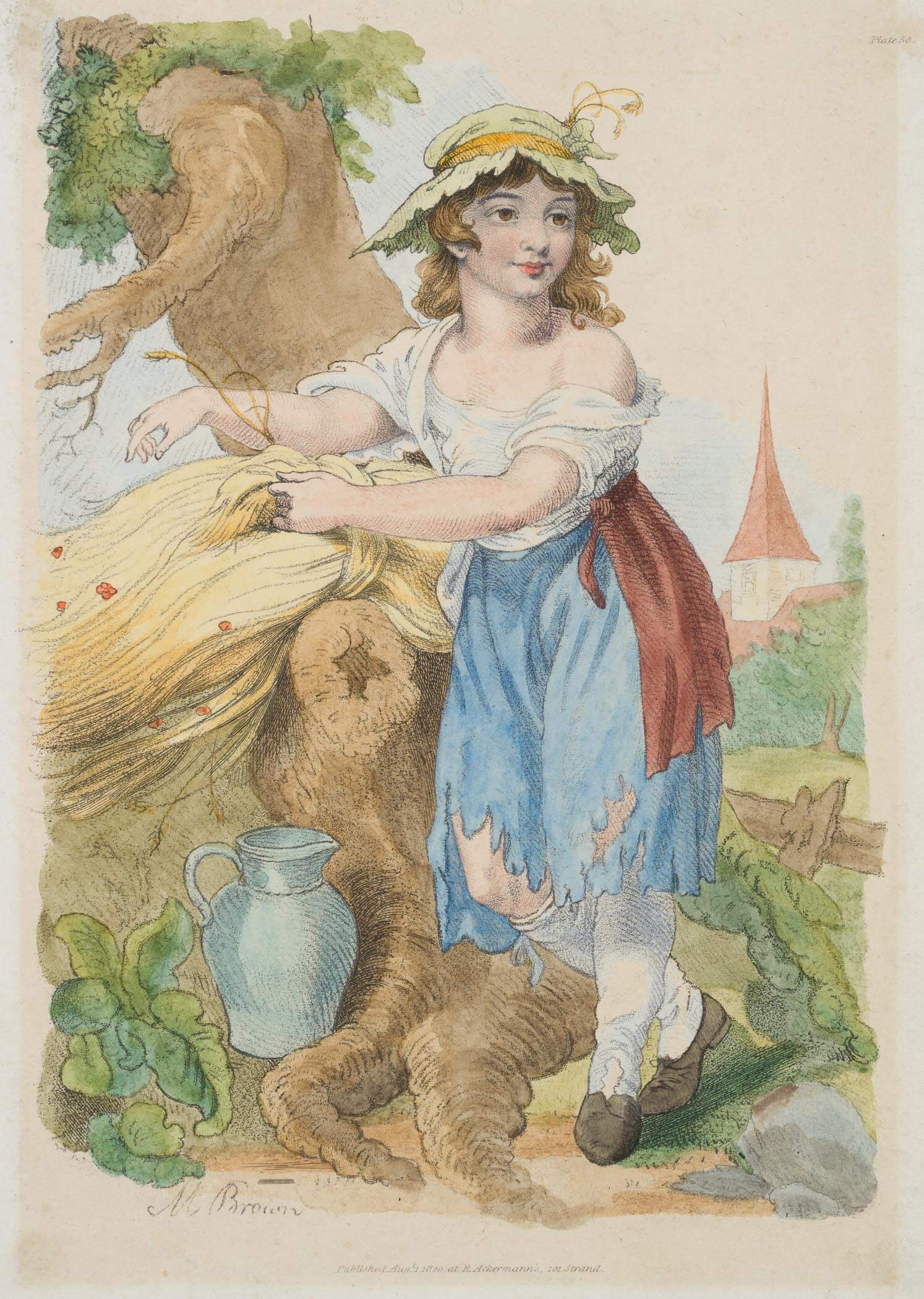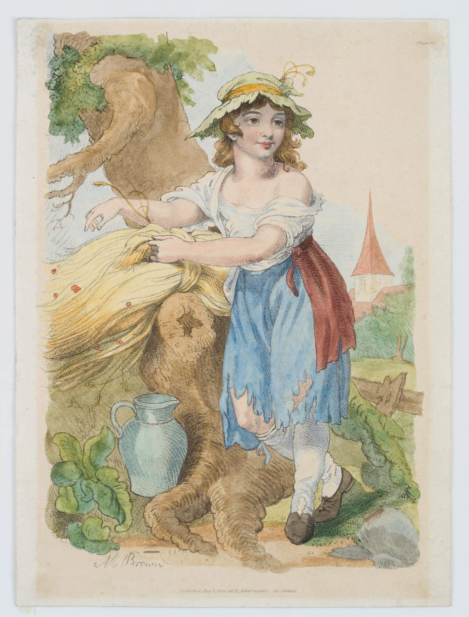 M Brown (19. Jahrhundert), Bauernmädchen mit Getreidegarben, 1820, Radierung