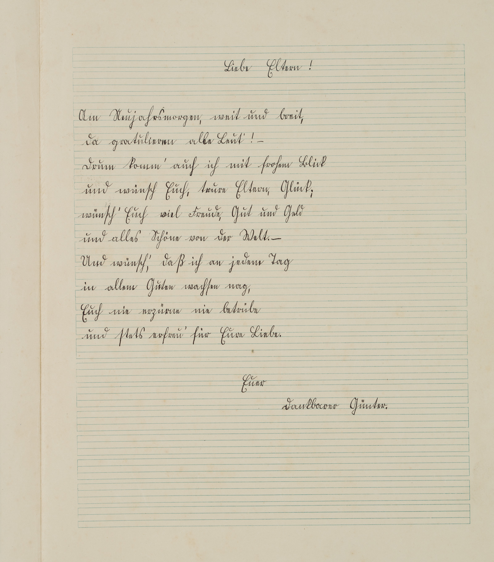 - Description: Inside with handwritten wishes “Dear parents..your grateful Günter”. Signed “Max Brückner” on the front bottom right.
