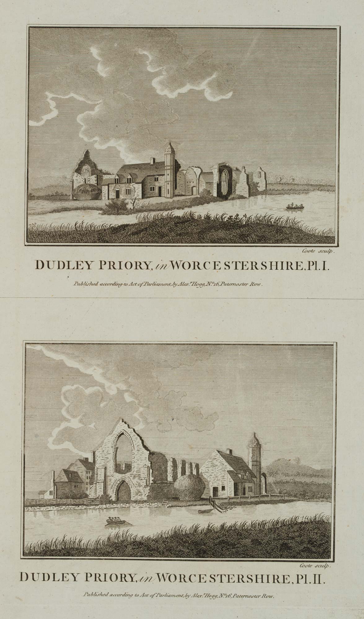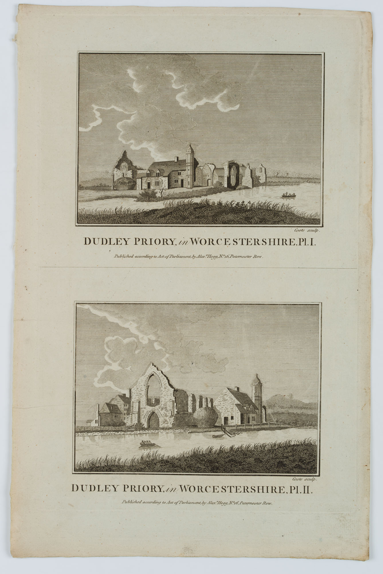 M. Coote (18th century), Two architectural and landscape depictions: “Dudley Priory, in Worcestershire PlI”, “Dudley Priory, in Worcestershire, Pl II”, 18th century, Etching