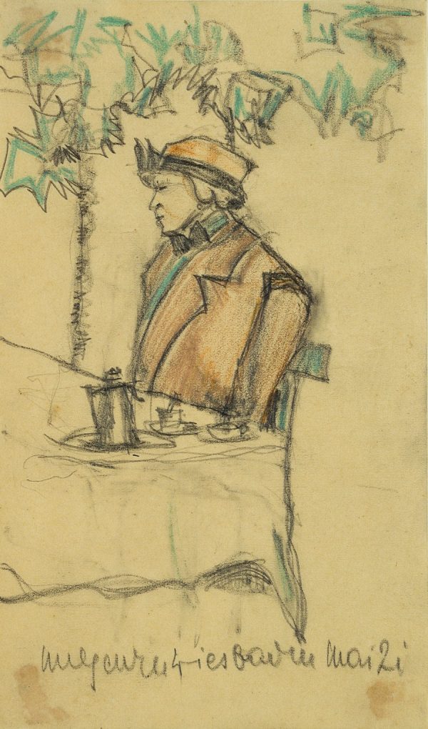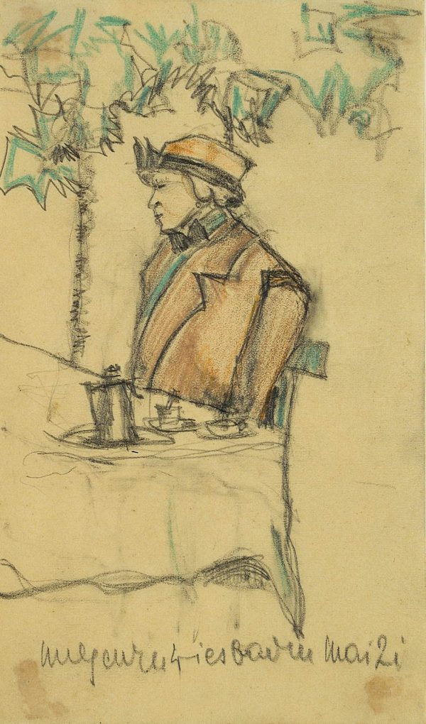 Marinus Ursul Maria Gewin (1900 Obermenzing near Munich – 1976 Obermenzing), Woman in garden pub, 1921, Chalk