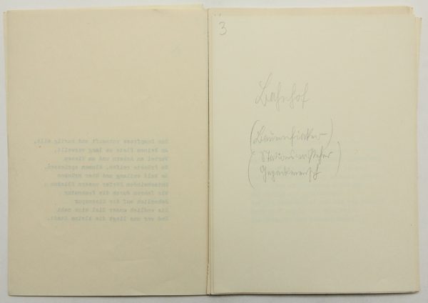 - Description: 31-page typewritten typescript with individual pages with pencil markings in cover with handwritten title.Please also note the corresponding illustrations by Emil Tieck in our further offer.
