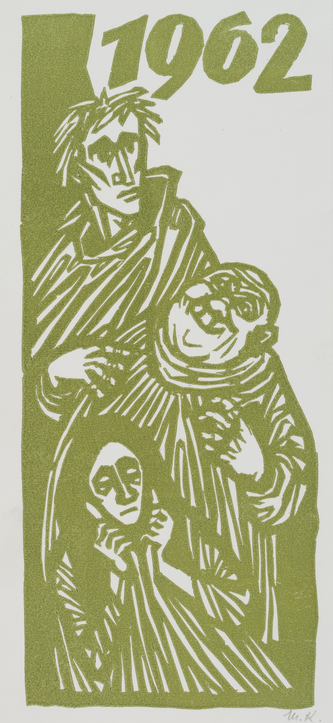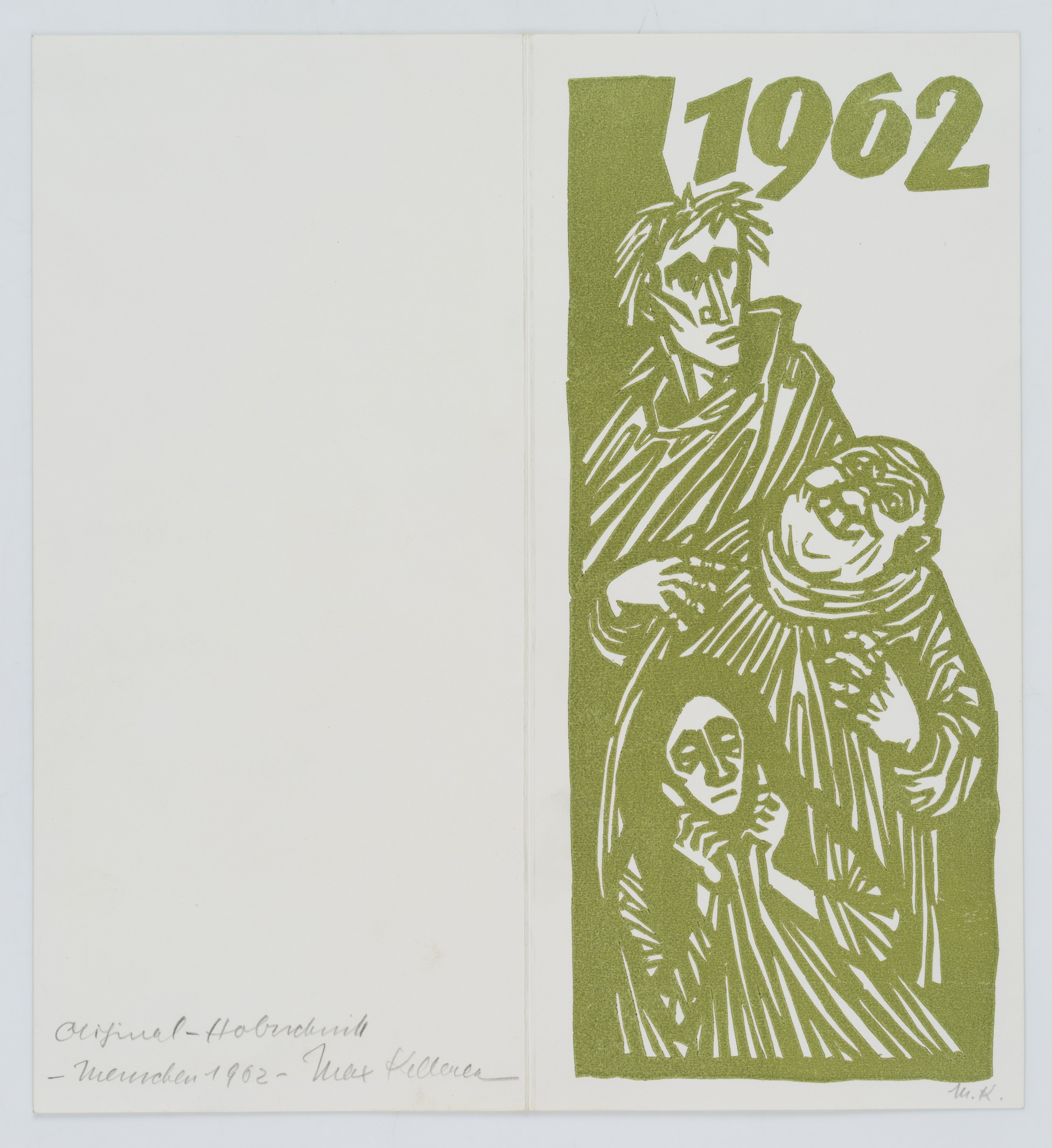 Max Kellerer (*1905 München), Grußkarte zum Jahreswechsel, 1962, Holzschnitt
