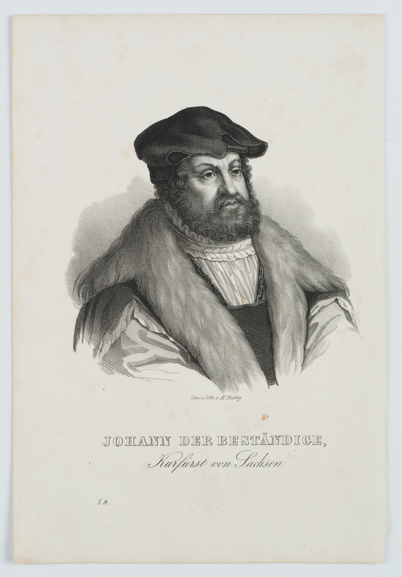 Maximilian Knäbig (1804 Meißen – nach 1876 ), KNÄBIG, Portrait des Johann der Beständige, Kurfürst von Sachsen., 19. Jahrhundert, Lithographie