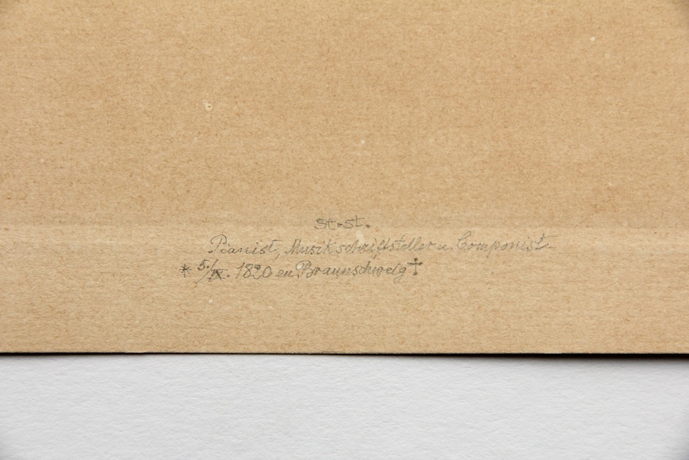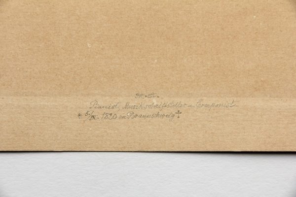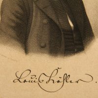 - Bezeichnung: Unterhalb der Darstellung in der Druckplatte signiert sowie mit der eigenhändigen(?) Unterschrift des Dargestellten bezeichnet. Am unteren Blattrand befindet sich eine Bezeichnung der Lebensdaten des Dargestellten in Bleistift.