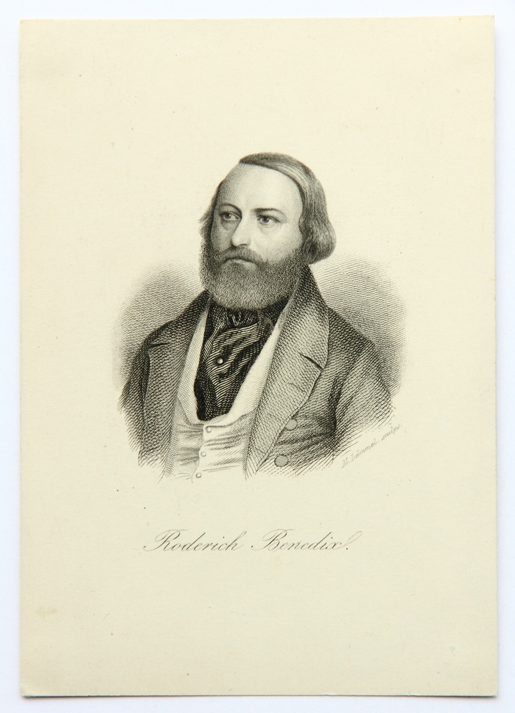 Martin Moritz Lämmel (*1849 Kulkwitz), Der Theaterschauspieler R. Benedix (*1811), 19. Jahrhundert, Stahlstich