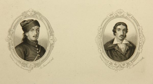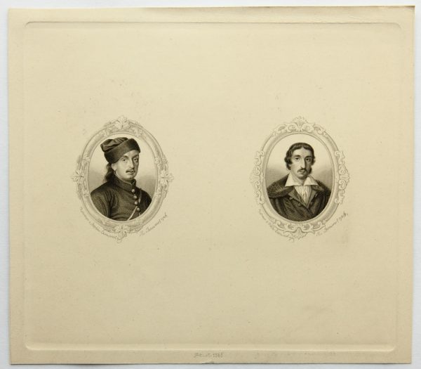 Martin Moritz Lämmel (*1849 Kulkwitz), Doppelporträt zweier Edelleute in separaten Rahmen, 19. Jahrhundert, Stahlstich