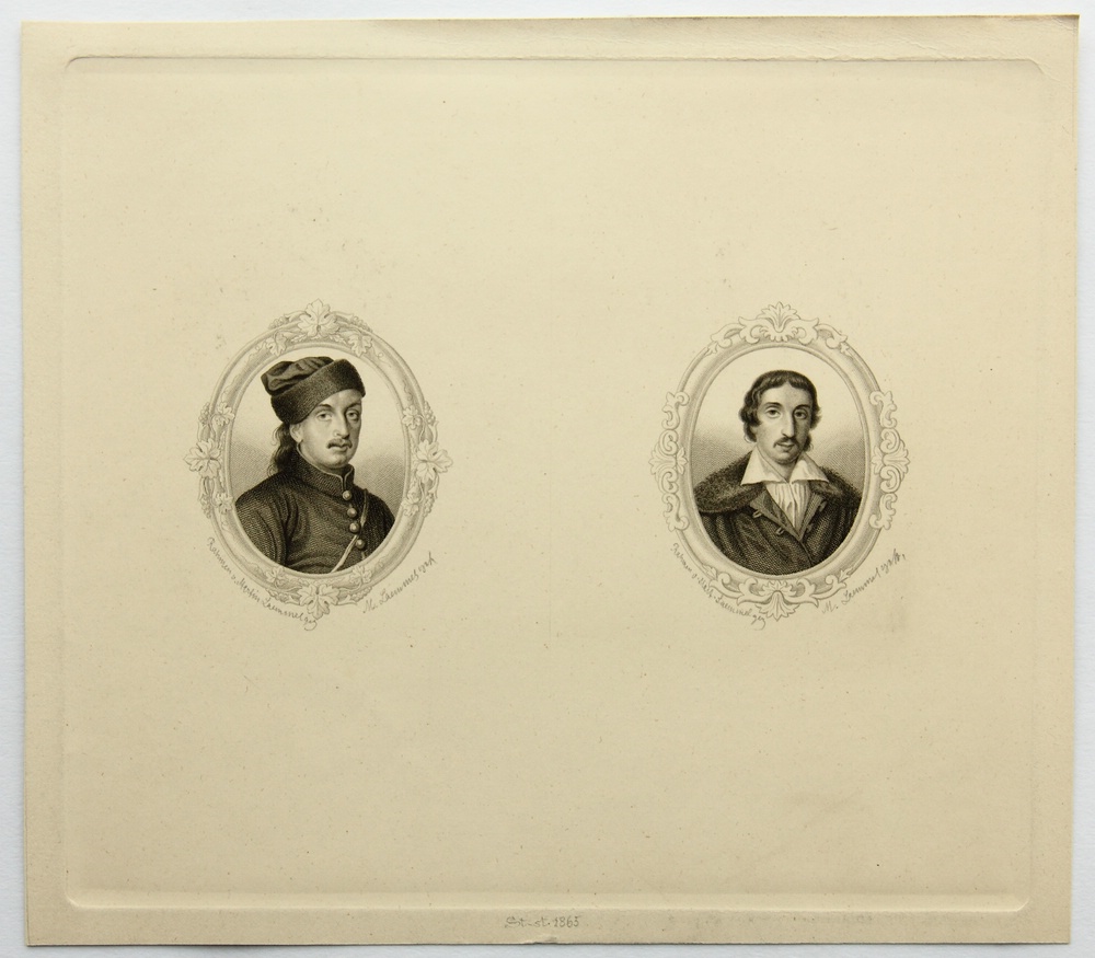 Martin Moritz Lämmel (born 1849 Kulkwitz), Double portrait of two noblemen in separate frames, 19th century, Steel engraving