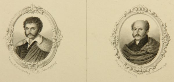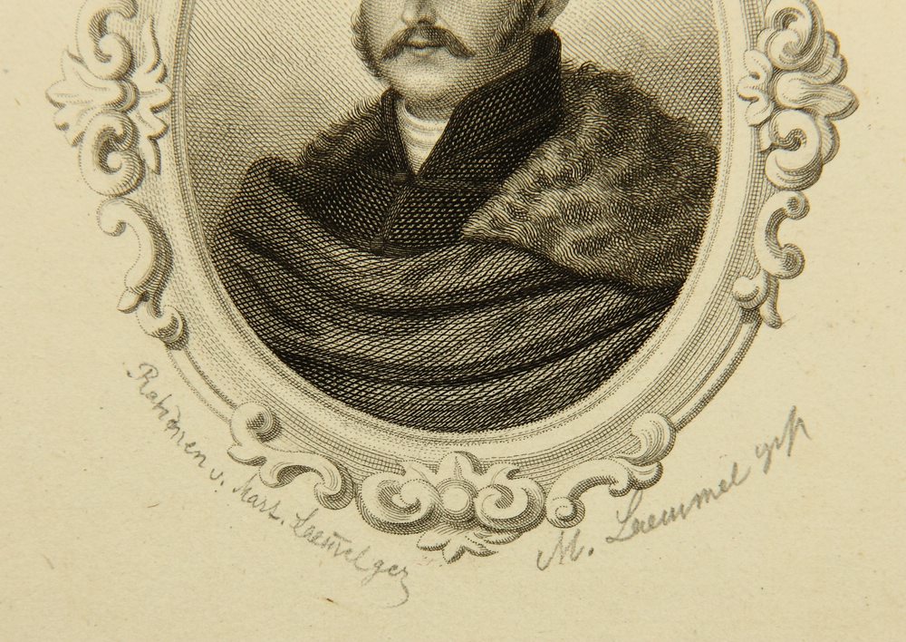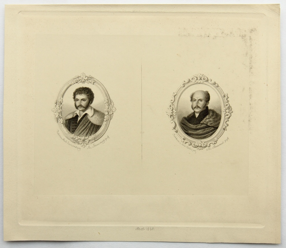 Martin Moritz Lämmel (*1849 Kulkwitz), Doppelporträt zweier Edelleute mit Schnauzbart, 19. Jahrhundert, Stahlstich